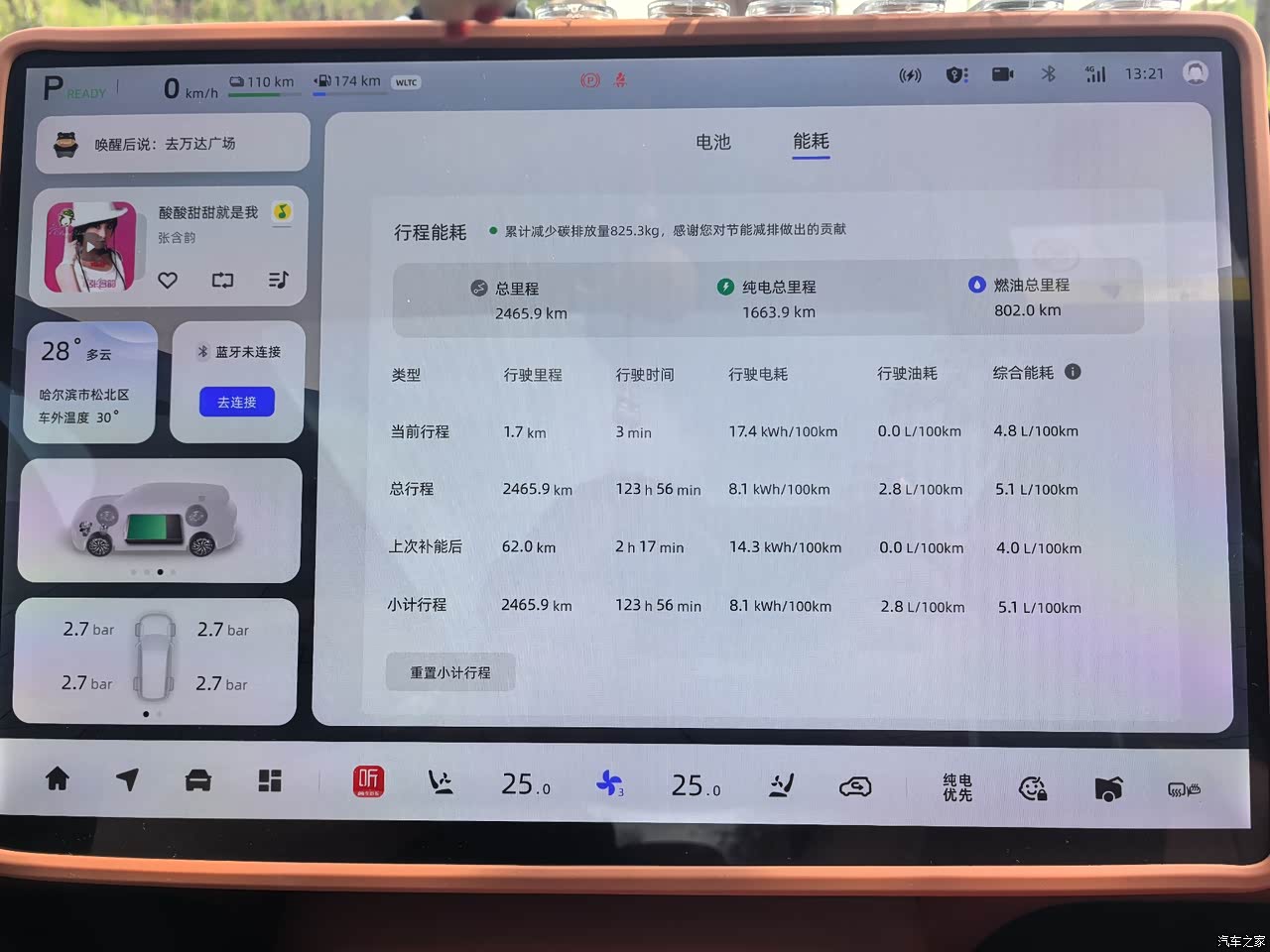 续航:表现稳定,满足日常 我选择的是插混版本,纯电续航完全能满足日常通勤需求。每天上下班往返40公里,一周充两次电就够了。电费也很便宜,谷电时段充满一次不到10块钱。亏电状态下,油耗也控制得不错,百公里5L左右,对于一台SUV来说相当出色。 不过,在冬季低温环境下,纯电续航会有明显衰减,这也是新能源车的通病。