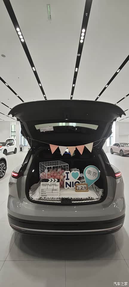 内饰应该让蔚来玩的最明白,色调层次、材质搭配、光影运用、空间平衡非常值得其他车企学习(嗯,尤其是比亚迪)。我在配色上选了较深的阿尔卑斯灰,却完全不会给人压抑的感觉,材质的精心搭配与层次设计,让单一死板、廉价网约车的风格荡然无存。 氛围灯的格调是我选车时最会先比较的,目前来看也就奔驰和阿维塔还能和蔚来较量一下。蔚来这个见光不见灯的漫反射设计太抓我心了。 UI设计色调把控也到位了,没有浓郁的国企风。。。用户交互上也简洁易上手。 最后当然是我们可爱的Nomi登场啦,配上不同的帽子,每天都是美美的。