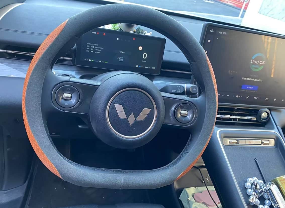 五菱星光S130km旗舰型,内饰用料真挺不错,中控台大面积软质包裹,触感细腻;方向盘握感舒适,怀挡设计更高级还释放了中央扶手通道的空间,用来放手机钥匙等小物品太合适了。