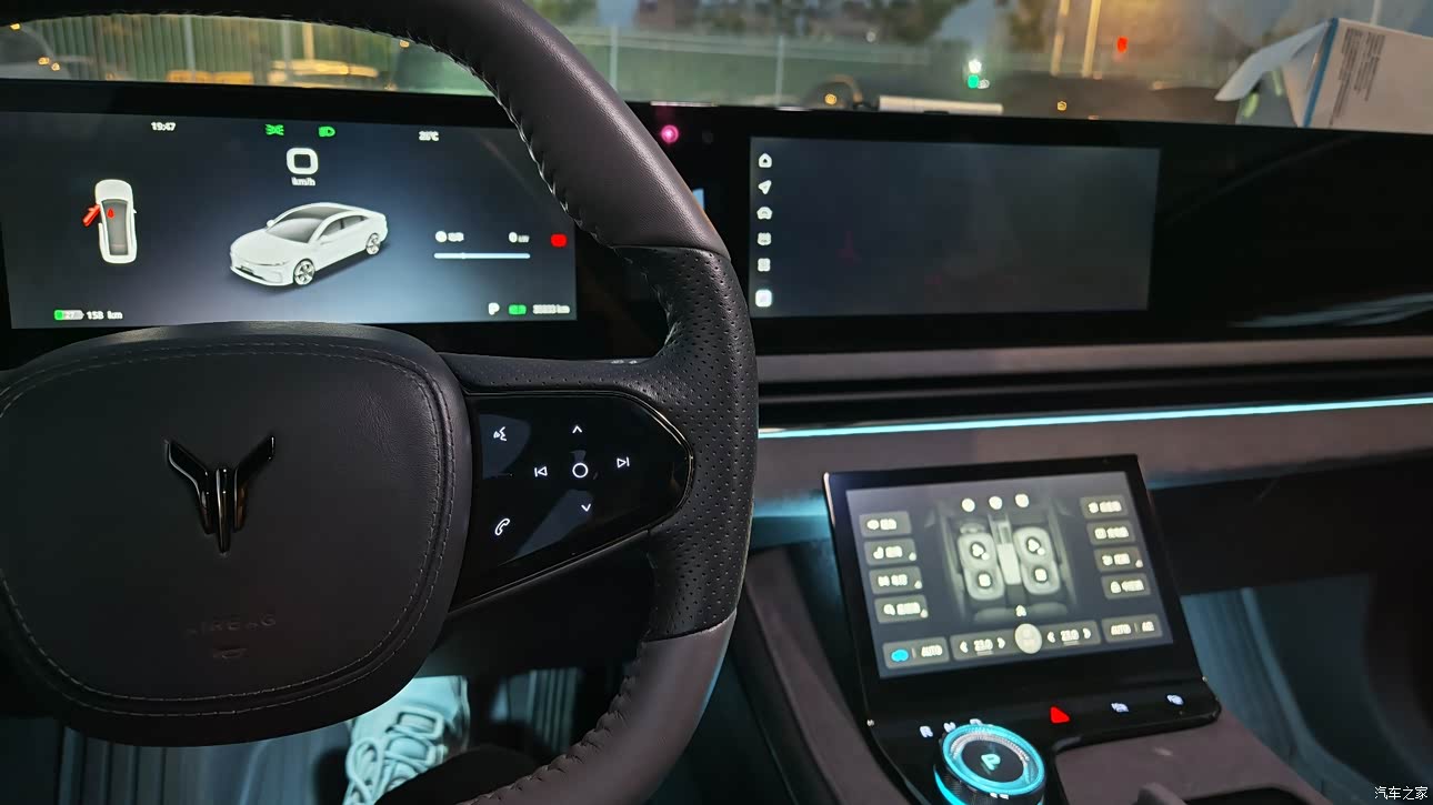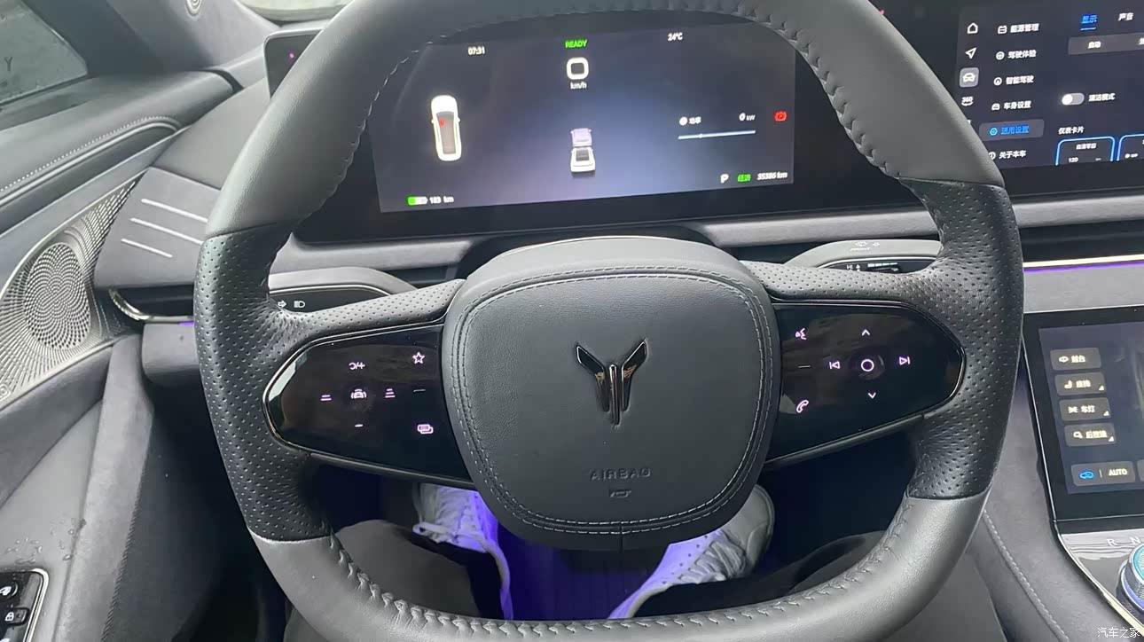 坐进车里,第一感觉就是“壕”!三块大连屏直接怼脸,水晶档把漂亮的很,座椅还是摸起来软乎乎的,打孔设计透气性也不错。车内到处都是翻毛皮和木纹装饰,连车顶都是麂皮材质,关上车门,豪华感直接拉满。 但这内饰也有致命伤,中控屏和车门上的钢琴烤漆面板简直是指纹收集器,用手摸两下就全是指纹和油渍,逼死强迫症。我现在车里常年备着湿巾,隔三岔五就得擦一擦。还有,车内氛围灯虽然能调64种颜色,但晚上开车的时候,要是调成比较亮的颜色,会有点刺眼,影响驾驶视线,所以我一般都调成比较暗的色调。