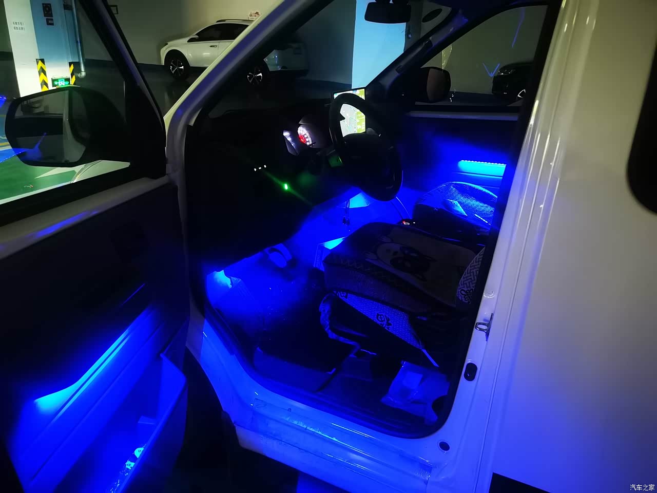 就是因为内饰真的是简陋,该省的不该省都的被厂家给省了。因此全车都被改装了。, a、加装了两个日行灯,看上去直接帅呆了。 b、 A柱两边增加了两个扶手,或多或少上下车的人都会用到,副驾头顶上增加了遮阳板,放文件或者遮太阳光都会起到作用, c、车的两侧增加了贴画,要不然只是一个白色,看上去啥也没有白花花的。 d、全车车门都增加了u型隔音条,粘上去很简单,效果也很好,防灰尘又隔音。 e、因为后尾门是用钥匙开关的,十分不方便,我又增加了电动钥匙开关,把线接到前门上,一同跟随前门开关,终于不用钥匙了, f、因为车的铁皮太薄,在沥青路面不好的地方能清晰地感到路噪。因此全车我都自己安装了止振板,三个车门,两个后门,还有车的侧面全车安装,就连里面的内饰板也增加了隔音棉,效果还是相当的好, g、我爱惜车胜过爱自己,2千元买了最好的磁控膜贴在车窗上。车的两侧还贴了隐形车衣。 h、下面才是此篇文章的重点、 因为开电车平时本就安静,没有个音乐之类的,开车特别的枯燥无味,因此我买了一个13.1英寸的中控屏装上去,13.1英寸的车机功能包括,全车360全景影像,为了装360影像,可是费尽了我的心思,后保险杠拆了,前保险杠拆了,两个反光镜拆了,两个门板也拆了,打孔穿线调试组装,直接整的是腰酸背疼,为了能让dsp发挥到最好的功能,我又把原车4寸的喇叭改成了6.5寸,副驾的门还要重新穿线,想想改一次也不容易,所以最后直接上了前三分频,后两分频,中置增加了一个JBL的低音炮,效果是相当的不错,为了改这些,整个车都被我拆散了,整车全拆装一次也不容易,我又增加了多功能方向盘,直接通过按键控制车机,最后还增加了72色氛围灯,主副驾脚下和车门4个灯带,晚上开灯氛围感满满。前前后后自己整了一个月,真的是费尽了心思,原来买毛坯房也有好处,可以自己尽情的发挥,直到改到自己满意为止。说来估计扬光这车在昆明周边,也是第1个爆改的车了,如果有比我改装更多的,可以出来聊聊,