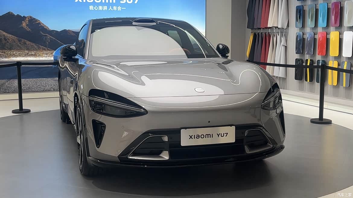 1.整体外观首先看一下前脸啊,与小米su七是家族设计语言一脉相承,经典得以延续 我们来看一下。 2.车灯其实有一些变化,虽然第一眼看上去跟小米su7的车灯相似,但是上面其实是镂空的。yu7讲的就是御风而来,所以说全车呢一共有十处空气动力学的设计,还有十九处的真风道。 3.我们依次往后看,前备箱电动开启方式和小米su 7 ultra同款 4.头顶上跟su7和su7 ultra 一样的激光雷达,都是鹅卵石的造型,可以降低风阻。 5.还有一个特点是yu7 门把手的设计变了一个新的样式,同样也是有电吸门的。 6.再来往后看倒车尾部扰流板和尾翼都是一个全新的样式,包括尾灯的设计也是一套新的语言。 整体上呢我觉得是硬朗当中带有一点犀利,但犀利当中呢还藏有点小温柔。