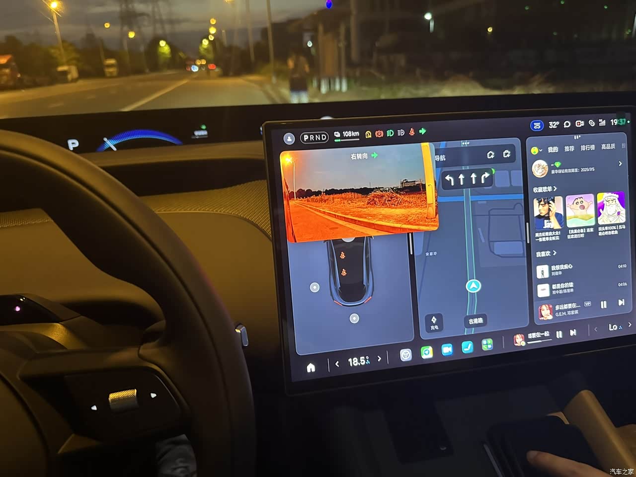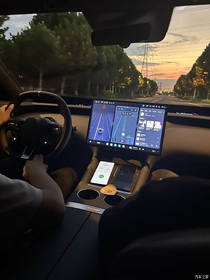 1、hud显示屏:之前一直看网上宣传,渲染效果很好,而真正眼睛看到的时候,还有有被惊艳到的,效果看起来很漂亮。可是结合真实驾驶时候的情况,可以说这块屏幕锁显示的信息,还是有限的。实时速度在驾驶正前方,中间是时钟,右侧是音乐播放器。而车辆的更多数据依然是在中控屏上,包括导航路线。还有个问题是,坐姿如果低了,这个黑色长条的反射区域会遮挡一部分底部视线,需要坐直看整个路面。 2、后排手机屏:后排有一个手机,是可以方便后排乘客操作汽车的一些基础功能,如空调温度、风量,音乐声音大小等等,方便后排更快捷的操作。 小米生态:大家都知道,小米生态和智能家居的互联一直都是他们的卖点,所以这个只要家里有小米的家电,都可以在路上用小爱一起语音控制了。