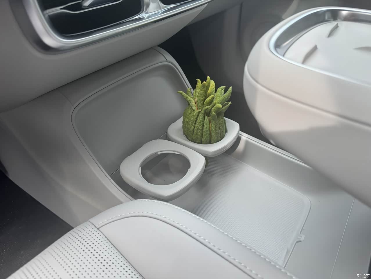 中控台是悬浮式的,下面的储物空间就比较大,拿去都相当的方便。两个可隐藏折叠杯架,可以满足日常的饮料和瓶装水放置。中央手箱空间非常的大。