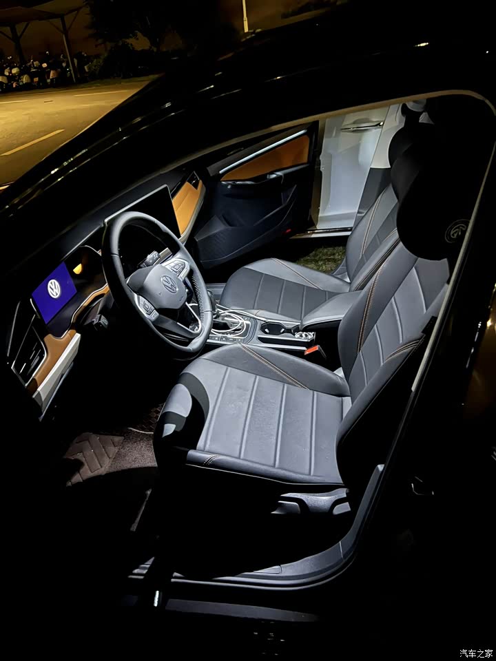 我选的内饰是黑色拼橙色,看着很年轻运动的感觉,就是因为这个内饰选的宝来