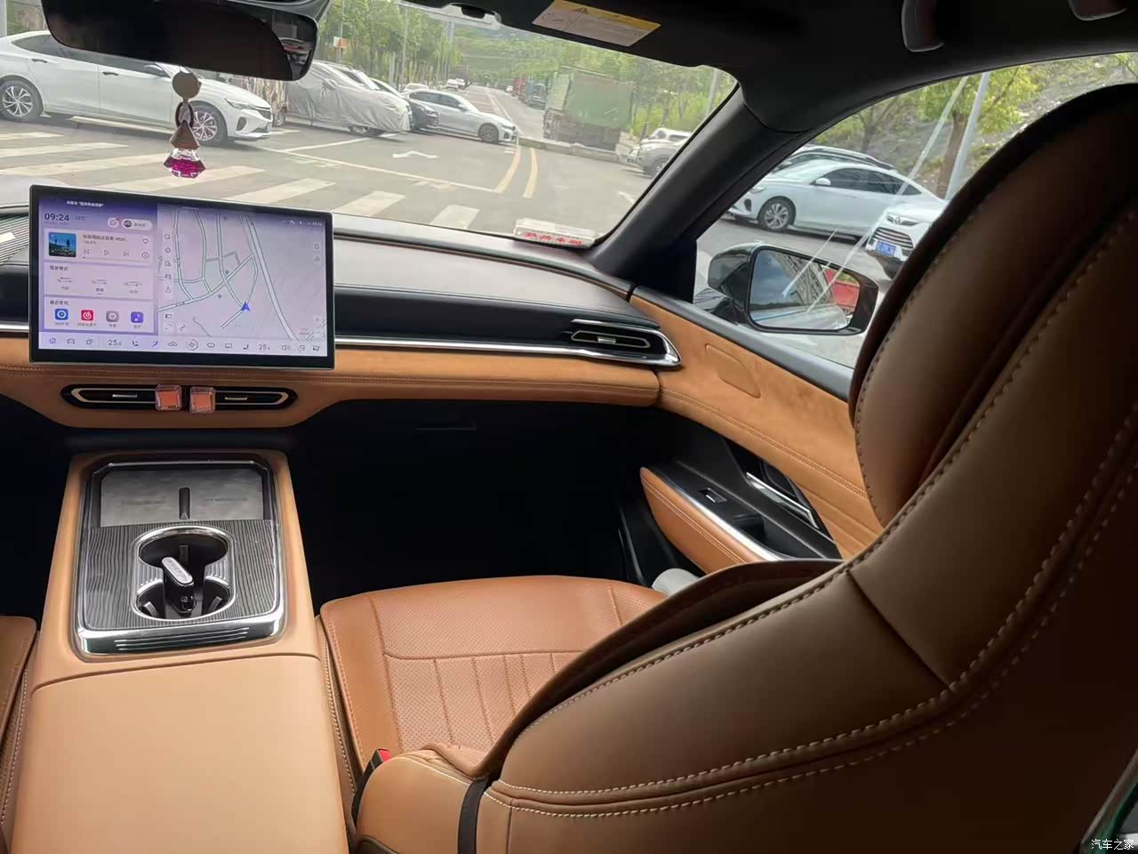 续航如果再能提高一些就更好了,不过现在是夏天,春秋季节不开空调的话应该会好一些。 内饰麂皮绒,显高档,但远看不是太耐脏,我自己弄了个颜色相近的座椅套,哈哈,还不错。