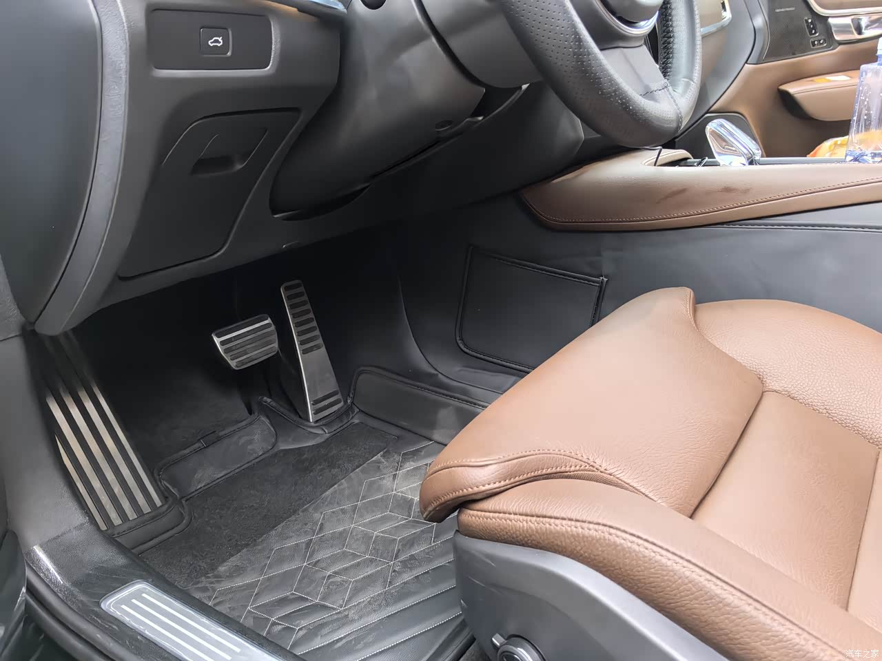 内饰用料我个人感觉很有质感,实木加上真皮包裹,能摸到的地方都是软的,比低配的要好一些,据说低配中控台是硬塑料的。