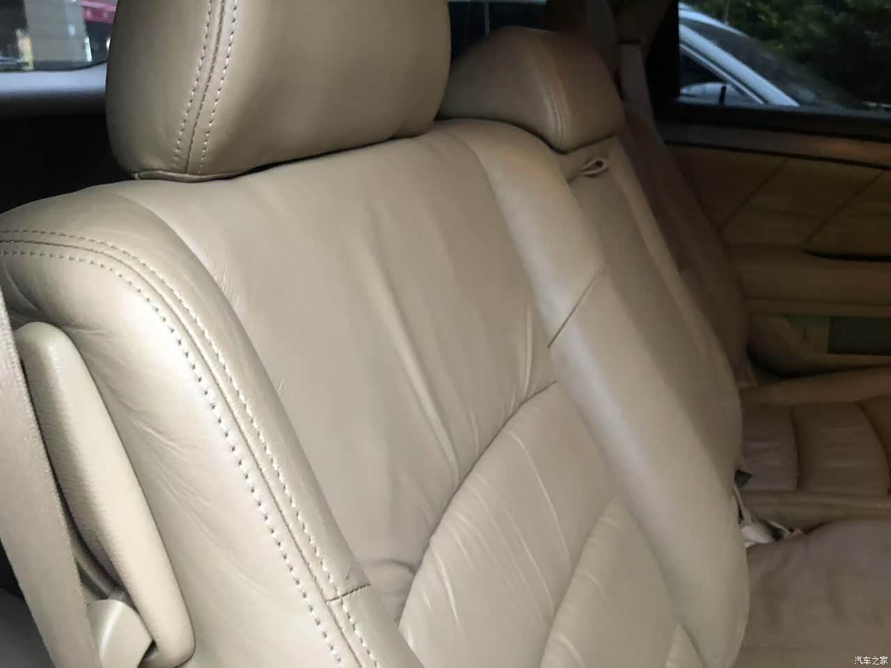 内饰的整体保养的还是比较新,浅色真皮座椅和桃木方向盘,搭配的很不错,方向盘好比全新的一样,手感非常好。