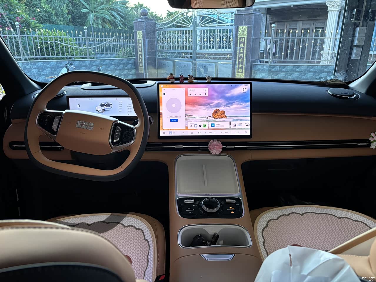 星舰7有两个屏幕,小的仪表盘主要看日常行车记录,包括里程,行驶公里数,油耗,电耗,行驶时间,驾驶模式,档位,等等,信息一目了然。另外一块屏幕是车机系统,有无界空间,导航,音乐,车辆功能设计等,功能很多,可以慢慢去研究。内饰颜色有棕色和白色,个人喜欢白色,无奈没有现车。总体很简约,功能一应齐全。