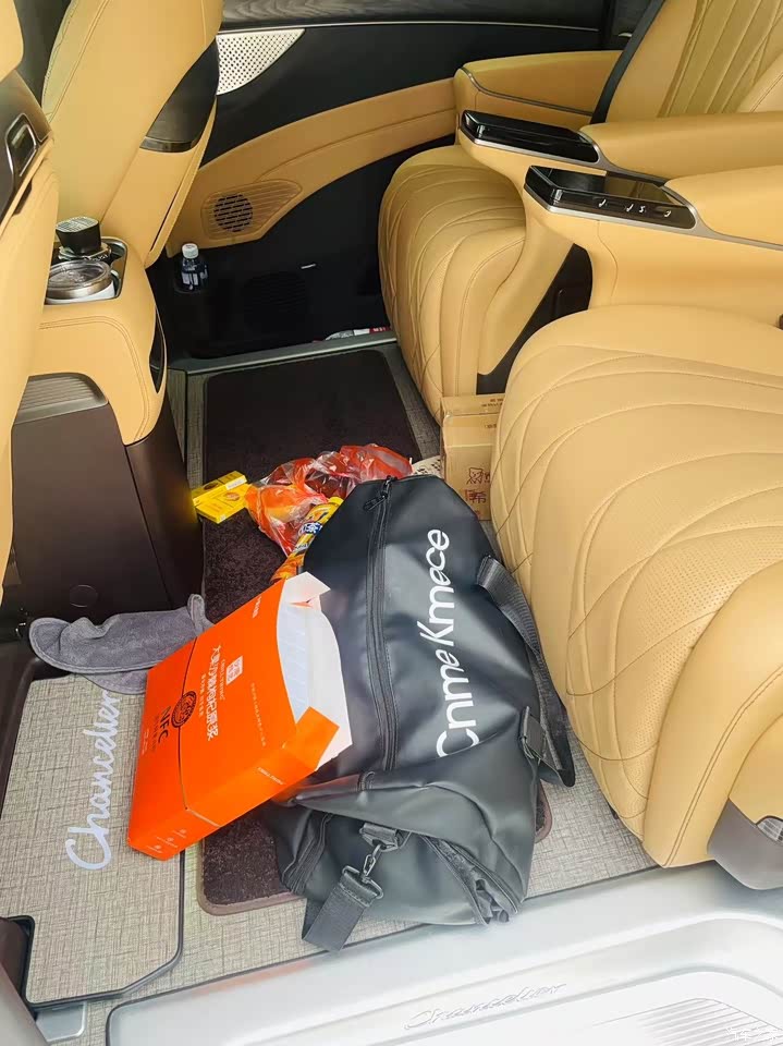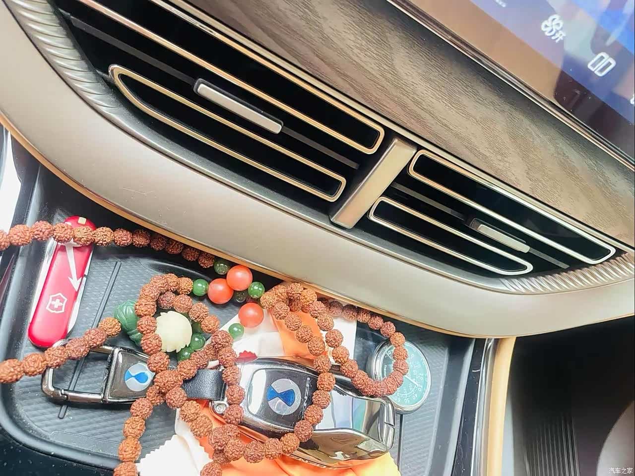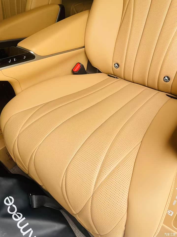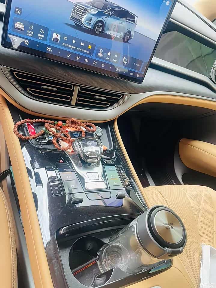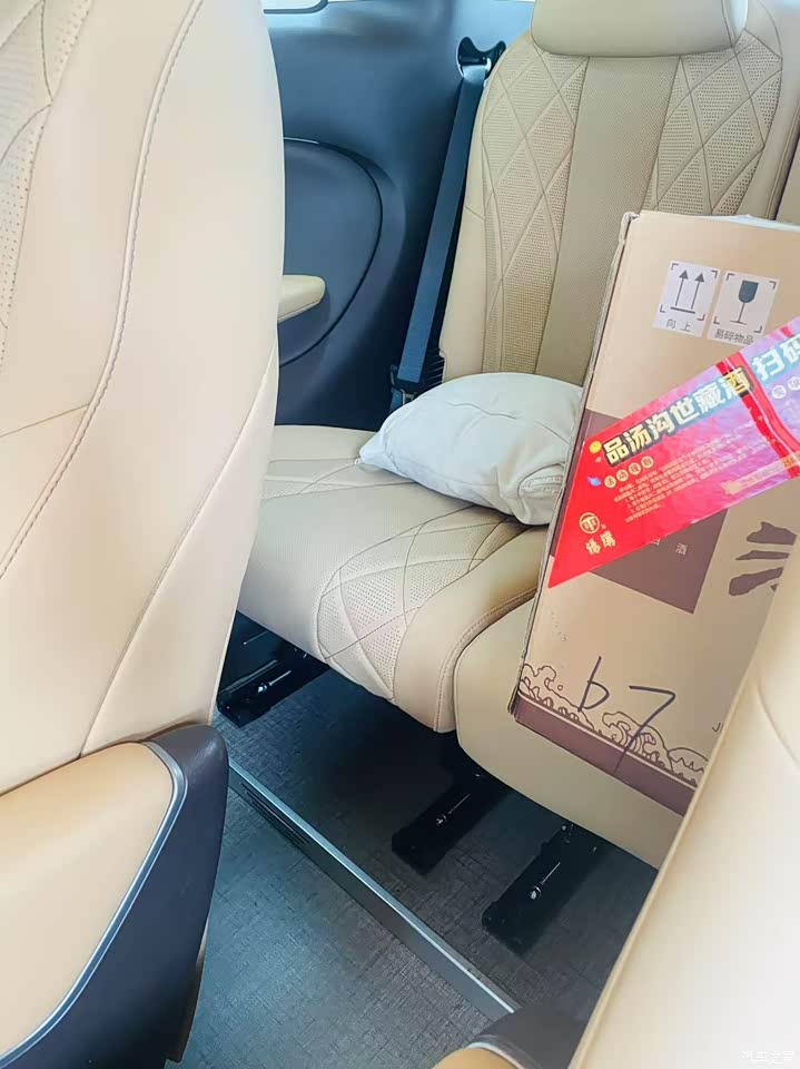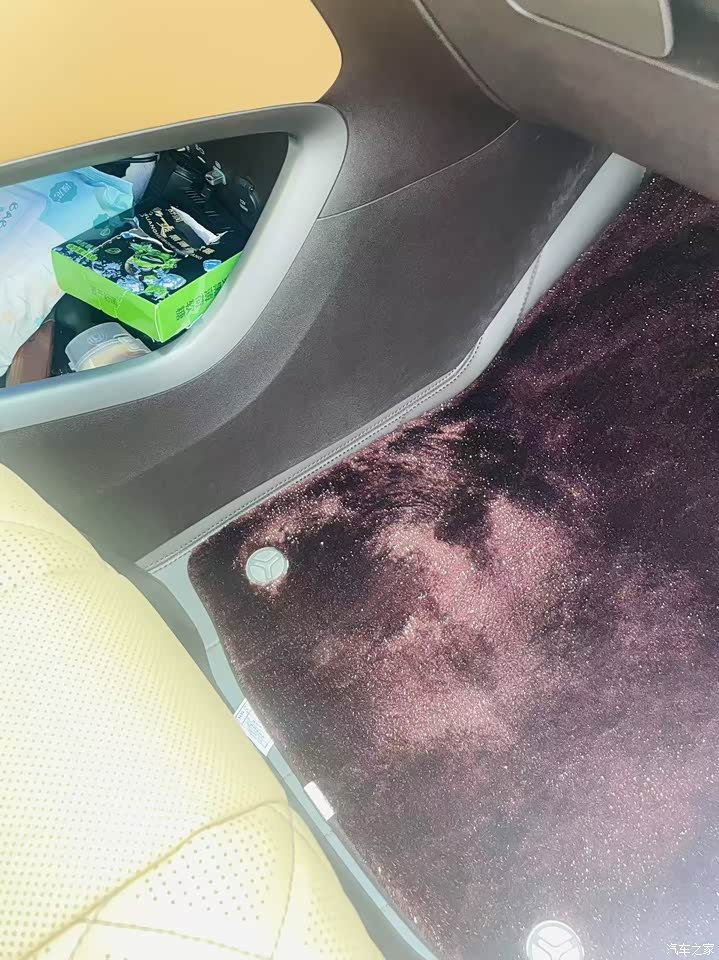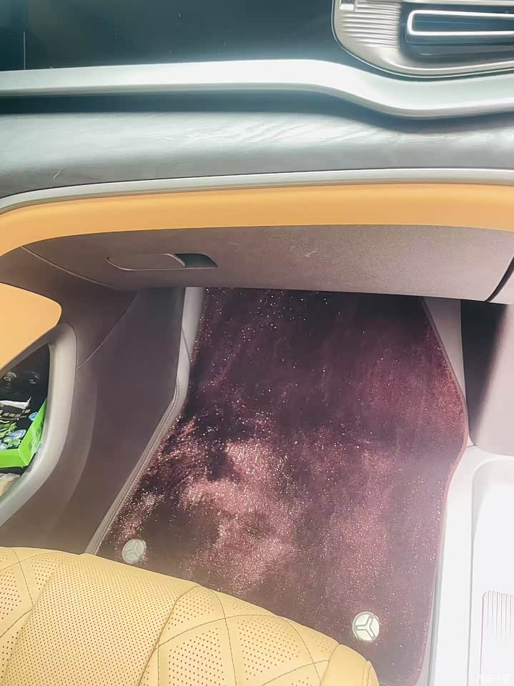 这个内饰我还是很满意的,很豪华,也很精致,对比了几个车型,就D9的内饰我是最满意的,皮质摸起来就很有质感,很高级,坐着也很舒服。座椅还带通风加热和按摩,不管是冬天还是夏天,都照顾到了,再也不要用怕夏天座椅烫屁股了。我选的棕色内饰,我自己觉得和黑色的外观很搭。我还做了灰色系的这种地板,平时接待客户和领导要更多一点,装了地板会比较好打理。