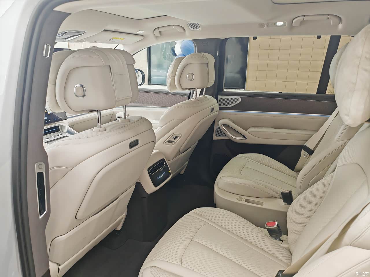 最满意的肯定是动力强、空间够大和云辇呀。 6座布局+3125mm超长轴距,二排独立航空座椅(通风/加热),1.75米成人坐第三排膝部仍有余量。全家6口出游时,后备箱轻松塞入帐篷+烧烤架+3个28寸行李箱,第三排放倒秒变2米“露营大床”。 后轮转向+云辇-A空悬堪称灵魂配置!5.2米车长转弯半径仅4.65米(堪比A0级小车海鸥)。