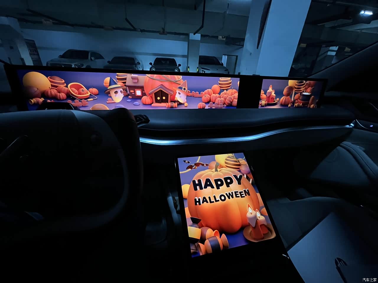 最让我惊喜的是内饰。半苯胺真皮摸起来很高级,比ET7的Nappa皮更亲肤,不像Model S满车塑料感。座椅填充偏软但支撑够,夏天开长途后背没被通风吹凉过(吸风式真的比吹风式舒服)。中央扶手箱的冷暖杯架是真实用——早上带的咖啡能保温到公司,下午买的奶茶20分钟就能冰到5℃;副驾的IM投影灯成了娃的“专属玩具”,晚上开车她总喊“爸爸开星星灯”,氛围感拉满。缝线、按键阻尼这些小细节,能看出厂家是真琢磨用户需求。