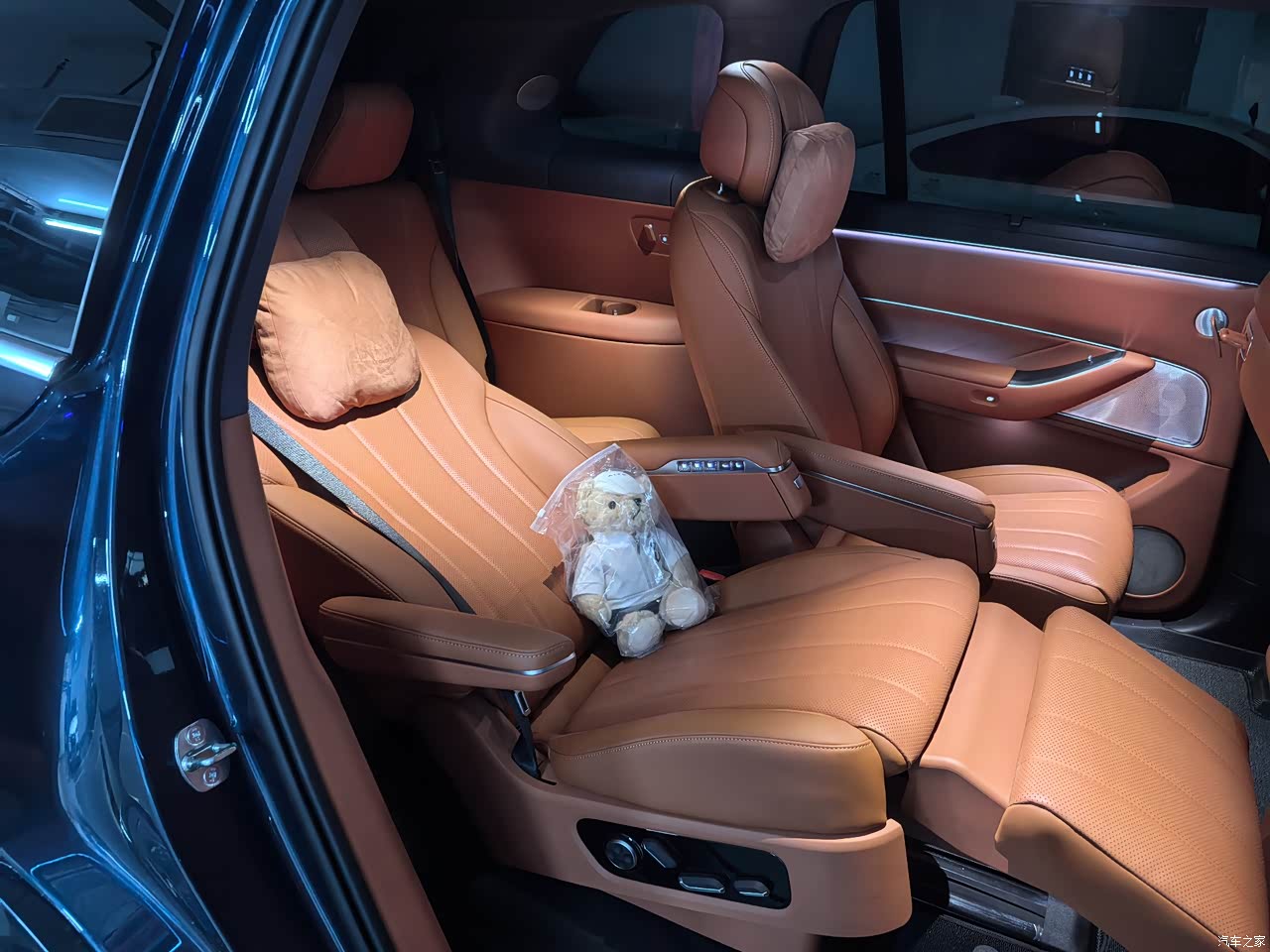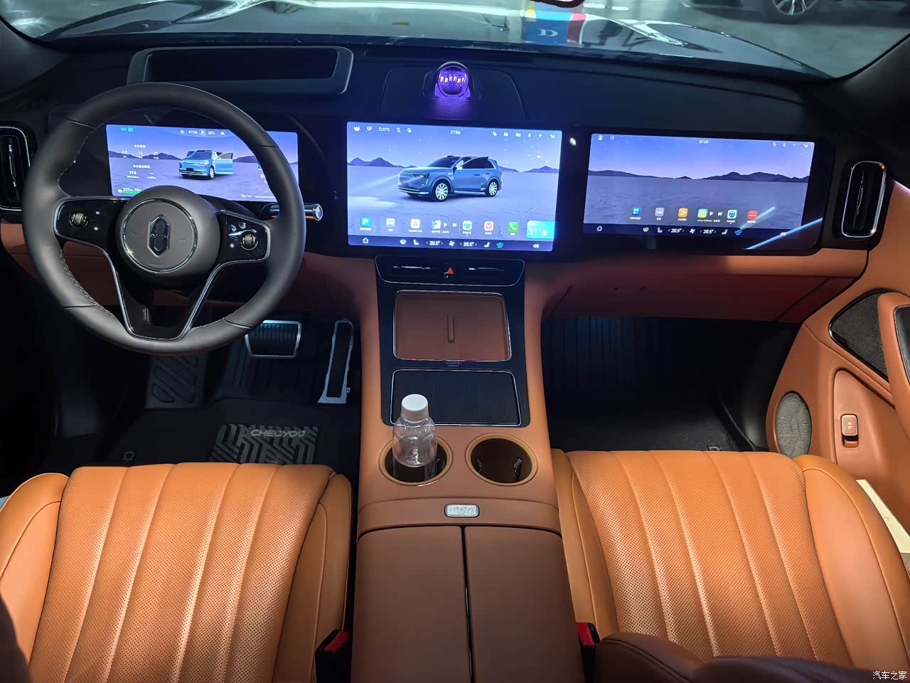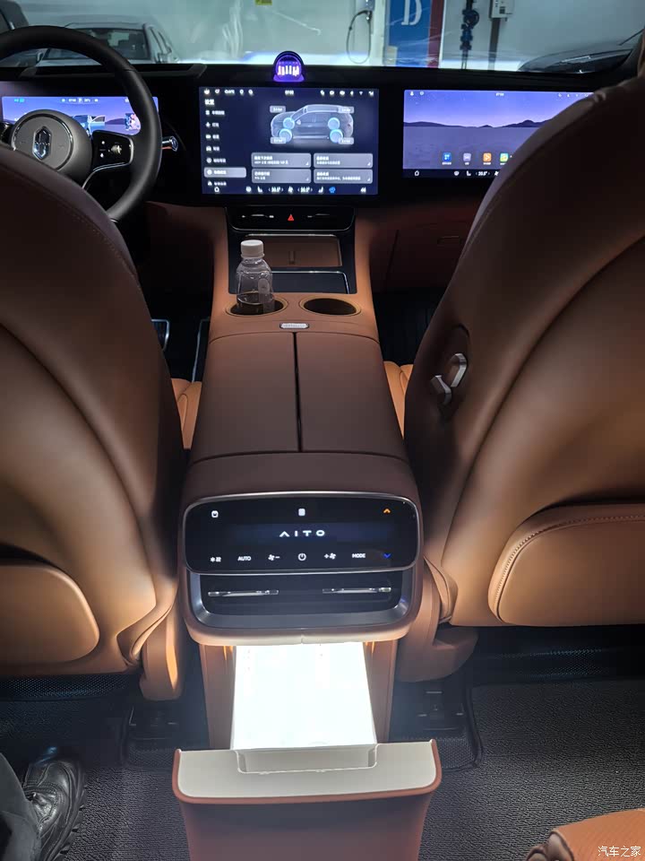 内饰科技与质感并存,真皮座椅柔软度适中,零重力座椅一键半躺模式堪称“移动按摩椅”。鸿蒙三屏(中控+副驾娱乐+后排触控)清晰流畅,UI设计直观。