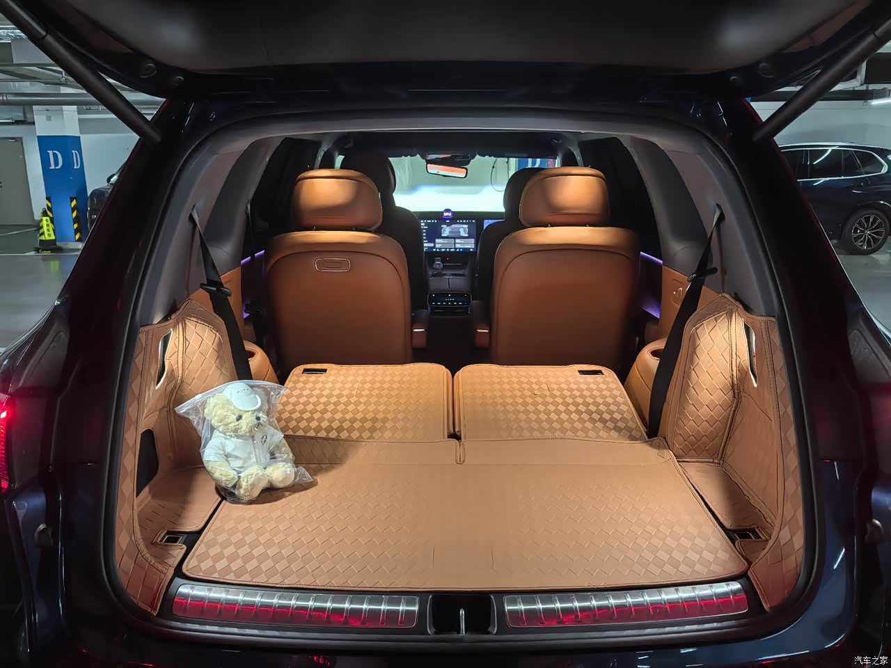 实用至上,除了三排放倒后的超大后备箱空间,车内储物设计同样贴心:中控下沉式储物格、车载冰箱、门板多层分区、后备箱隐藏储物格,还是超级能装的,可惜六座版没有五座版二排座椅下方的小物收纳区。