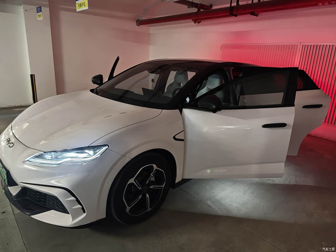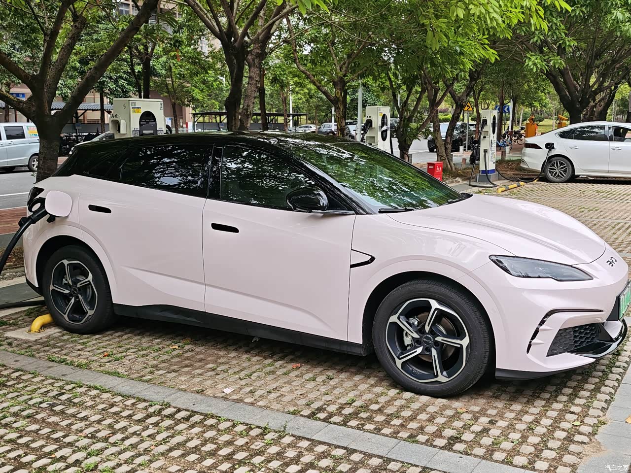 车辆外观好看,流线型的车身,两厢式的设计,十分的对我的口味。海洋系列的车头以及尾灯也极具美感,还有左右车门有迎宾灯,科技感十足。我提车后就贴了粉色的车衣以及黑色的悬浮顶,看上去整台车更加的修长,更加凸显了这台车的一个设计的速度感。