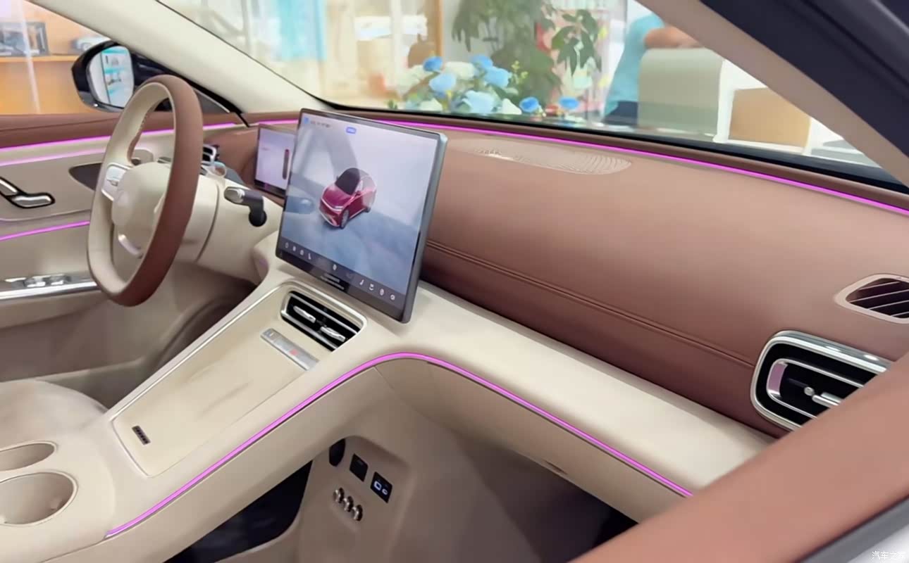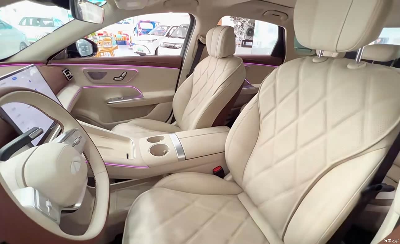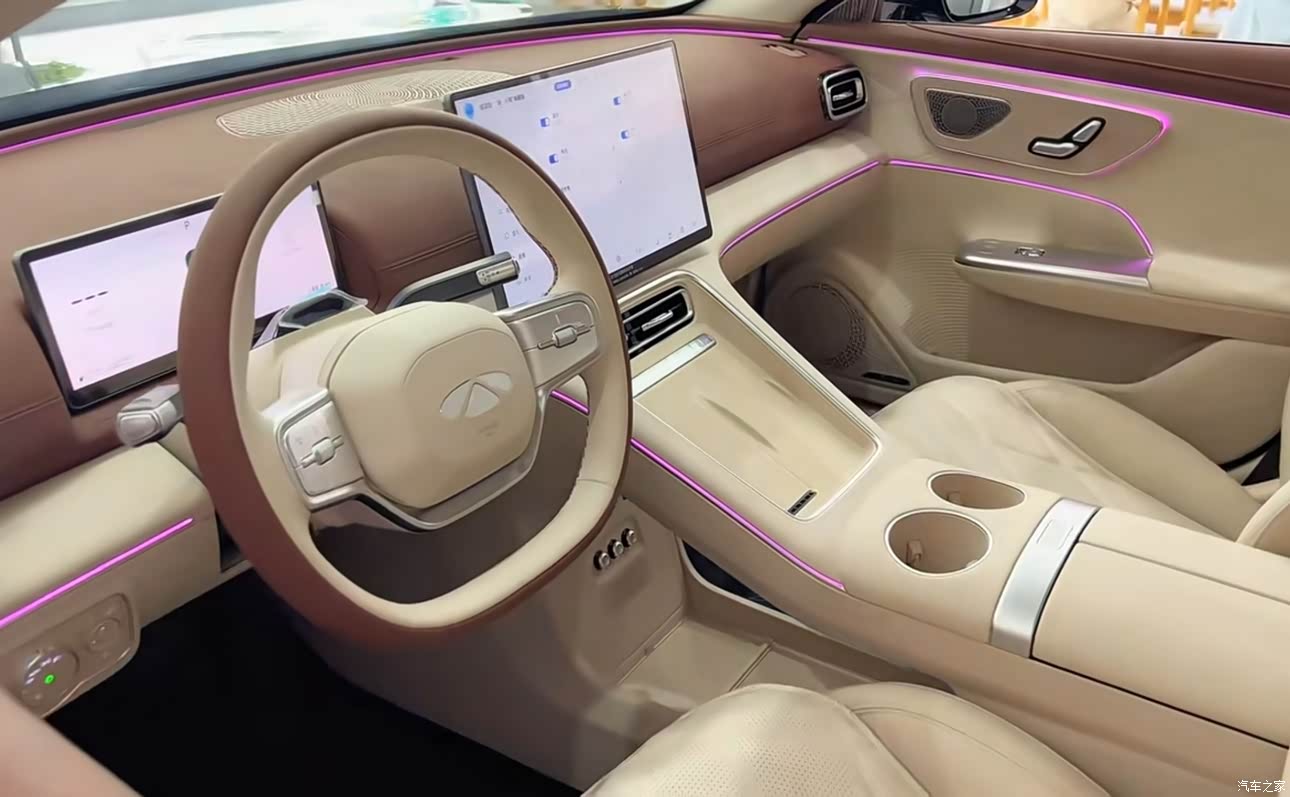 说到内饰,也是我最喜欢此车的一个地方,豪华质感超越同级,座舱采用环抱式设计,中控台大面积采用软性材质包裹,触感和视觉效果都属于非常震撼。座椅填充物软硬适中,长途驾驶也不会感到疲劳。方向盘采用打孔真皮包裹,握感也是很舒服,车内氛围灯支持256色可调,包括车内的实体按键,比起自己的艾8还是觉得风云A9L的实体按键显得高级