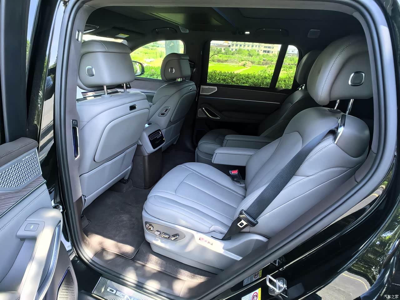 一脚电门下去推背感直接拉满,高速上超车轻轻松松,完全不像一台中大型SUV,智能驾驶辅助也让我很惊喜,高速上开启高快领航,就能跟着导航,实现变道,超车动作,让枯燥的高速驾驶变得轻松。空间更是一绝,6座布局对我这种二胎家庭太友好了!第三排坐成年人完全不憋屈,后备箱还能塞下两个24寸行李箱还有富余,二排座椅自带按摩,加热,通风,老婆孩子每次上车都抢着坐,说比家里沙发还舒服。