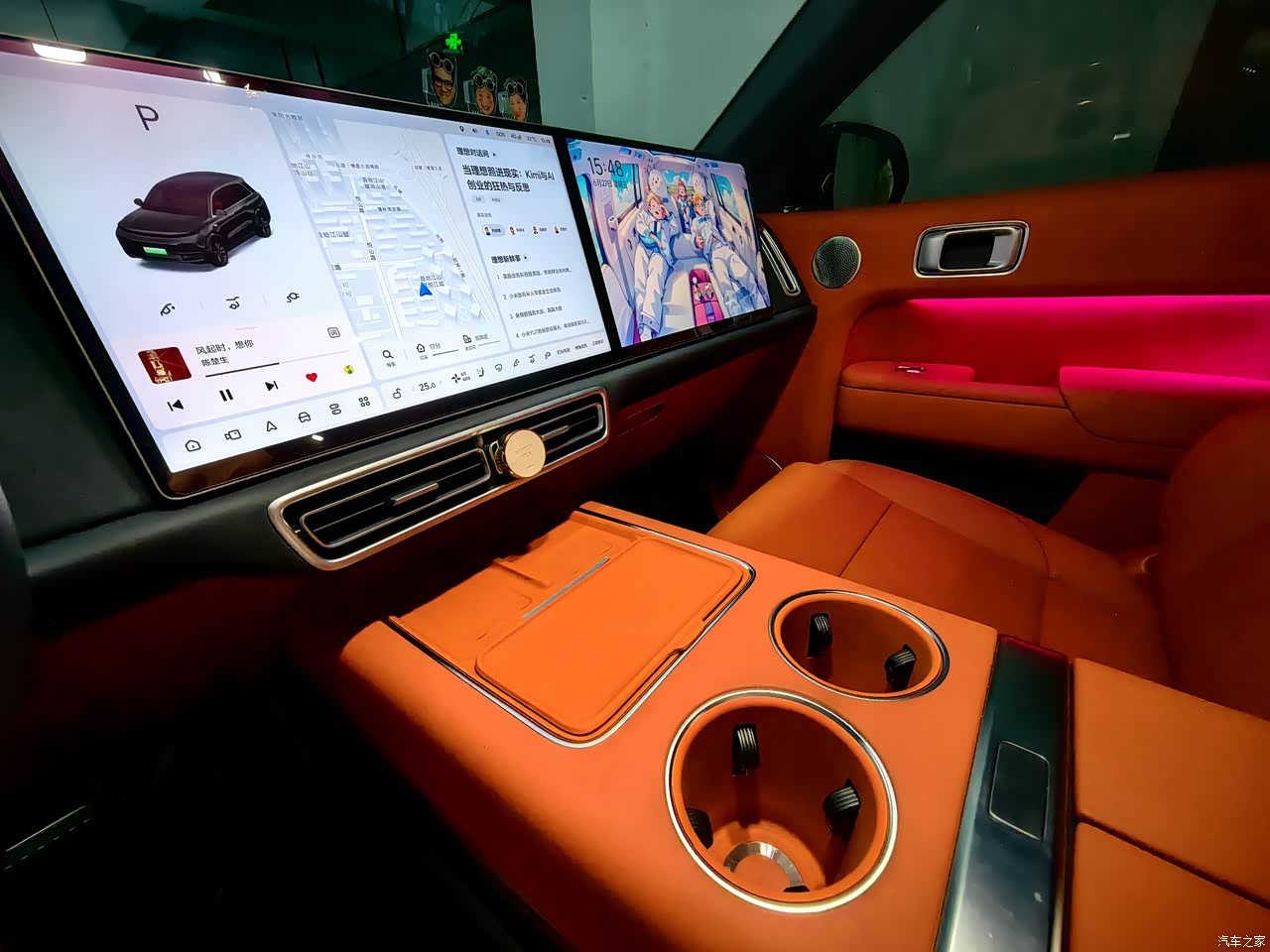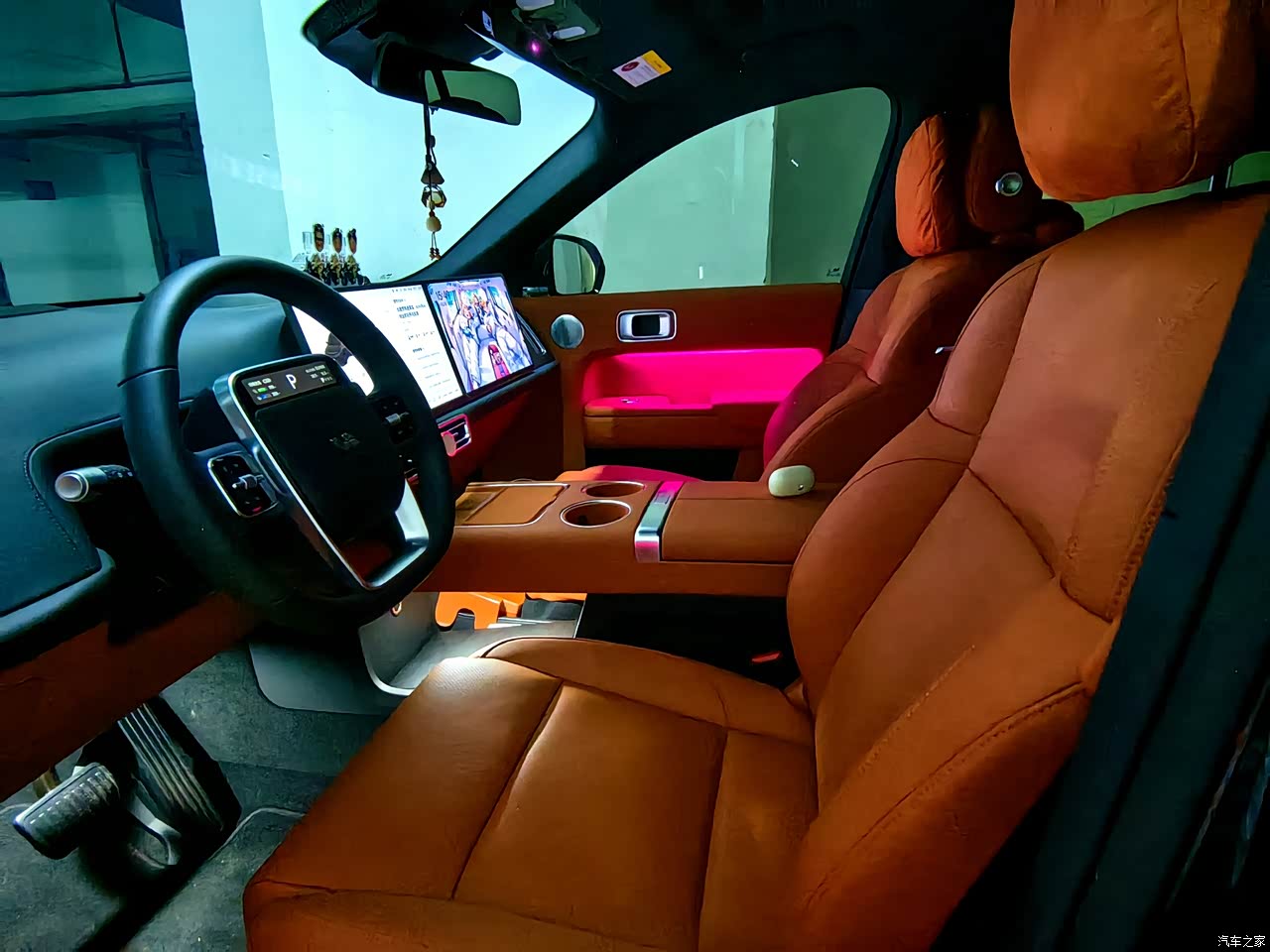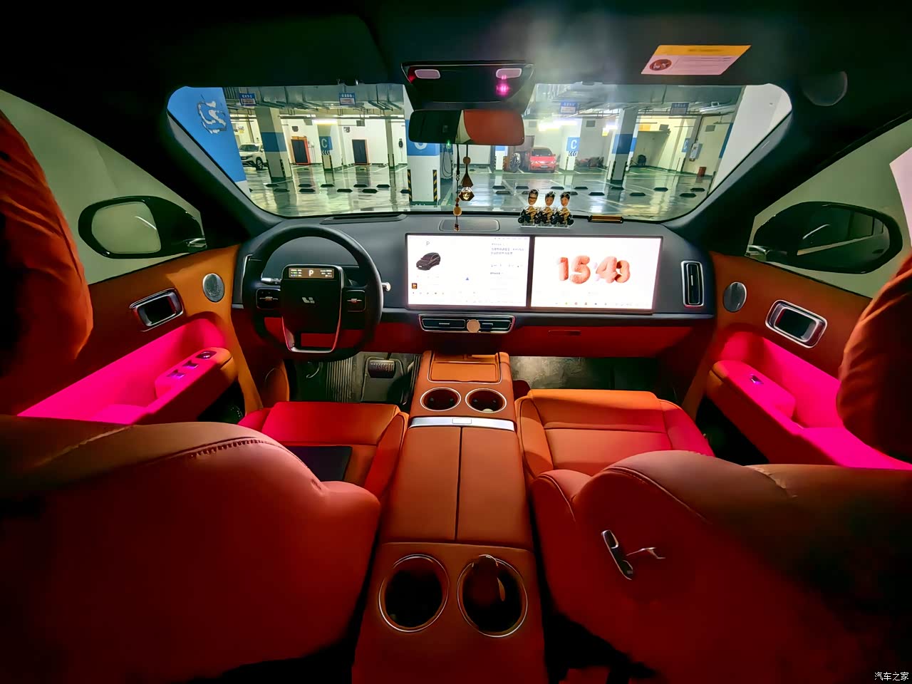 有些人觉得橙色内饰颜色很跳,但我非常喜欢,豪华而不失温馨和舒适感。不管是舒适的真皮座椅、科技感的两个大屏、大气的扶手箱、还是焕彩氛围灯,都很满意。买车之前在商场看到理想,最喜欢的就是上车后那份家庭的温馨感,每天都想在车里多待一会儿。