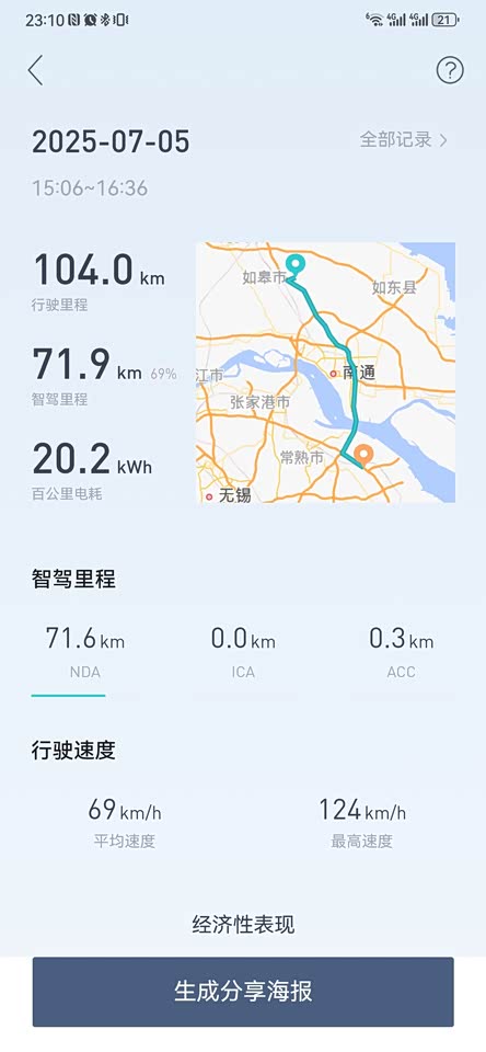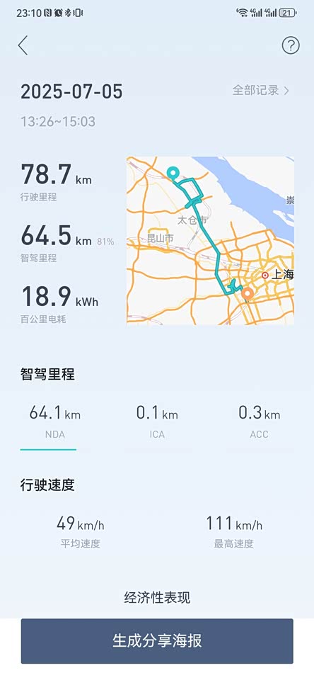 提车第一天就出了趟远门,综合续航能力还是蛮强的,搭载的108度弹夹电池,号称经过枪击试验不爆炸不燃烧,再安全上是真的很牛,高速上全程用的智驾,百公里电耗在18-20度电左右,算下来充满电能跑个500公里是没问题的,对于续航是非常满意。