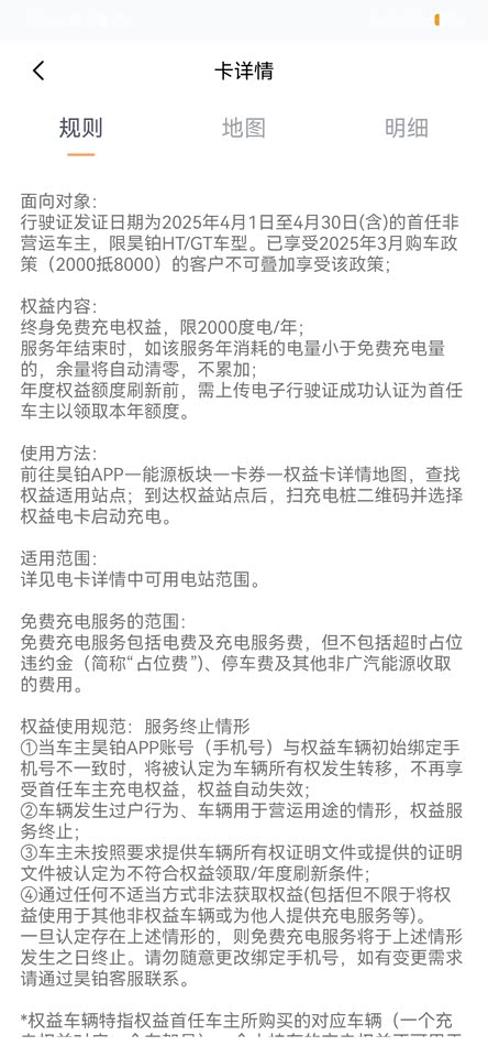 官方送的终身免费保养,电车应该就是检查电路,电池情况的保养吧,相当于免人工费,当然像滤芯啥的还是得自费,但光保养自费的话也要几百块了,这一点广汽做的还是诚意满满。 还有终生三电质保,整车跟悬架都是质保6跟8年,完全不用担心后期的一些维修更换成本。 加上终身的免费充电,诚意真的是满满的,性价比拉满。 总之这款车是我买的非常满意的一台车了,未来也是要开很多年咯,希望广汽昊铂能越做越好,后期多多OTA更新。
