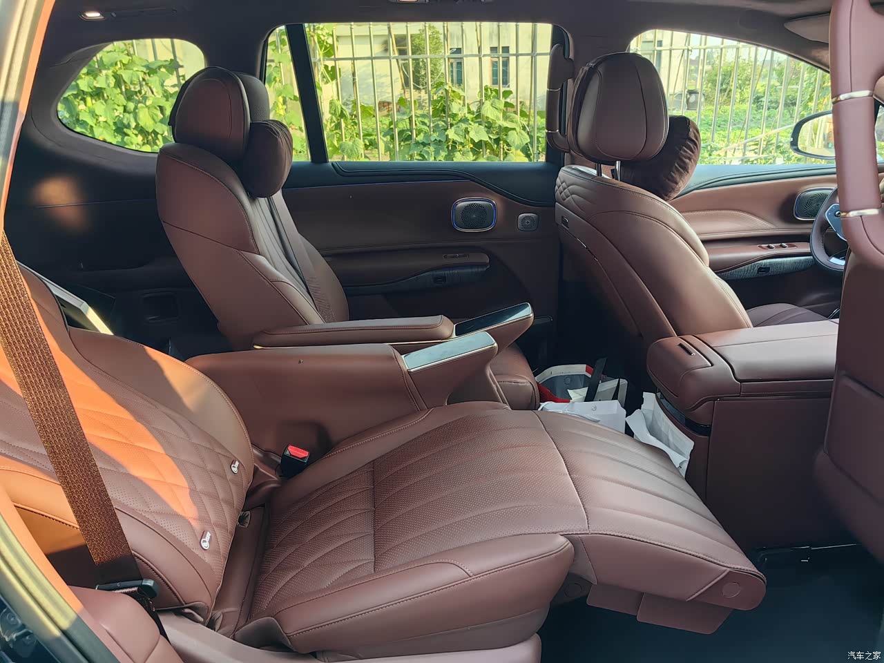 第二排航空座椅简直不要太舒服,车机系统也比较流畅,靠背加屁股全部都有按摩,力道很大,很舒服,加上双零重力座椅,差点就要在展车上睡着了,第三排也支持电动一键放倒,副驾座位手套箱上方还有个触摸按键,简直太新颖了,内饰也非常的豪华,简直是梦中情车。