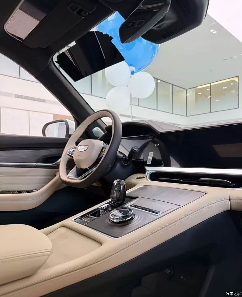 内饰的豪华感绝对是越级的表现。白棕双拼的配色高级感十足,大屏的设计科技感爆棚,中控台的缝线工艺精细到0.3mm级别。音响的音质清澈透亮,在车内听音乐是种享受。