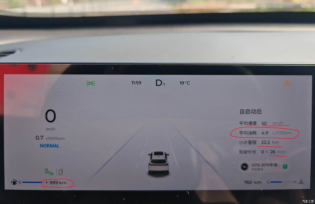 这车的油耗我非常满意。行驶公里总数还不到1000公里时,我曾经在一平缓的路段行驶了二十多公里测试过油耗,平均车速50,耗时26分钟,平均油耗才4.9,令人印象深刻。