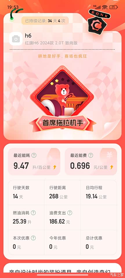 终于找到了合适的头枕和脚垫。我周一到周五基本上会远程开窗户透气2小时,目前车里基本上没有味道了。 车机收音机没法听,太垃圾了,有个电台还可以。每天通勤9个多油,一上车就关启停。 远光灯和近光是一起的,高速上远光灯感觉射到天上了都。但是调低近光灯也变低了,还有个问题就是不亮。天窗就开过一次,基本上没用。玻璃水亮灯就加满是3升。 60左右车速的时候耳朵疼,后视镜有风声,但是好多车都这样不算大问题。 买了车还是身边有人说哎呀你买车都快17万了,为啥买个国产车,哎,不知道咋回。很多人还是用老眼光看问题。一个2.0带t加速7秒的车,怎么能省油,那日系市区也得9个油不?但是一样的价格买的是什么内饰和外观? 就算百公里差1.2个油,一万公里才多花几百块钱。这笔账算了没,而且高速这车跑快了比同级别自吸省油,买车别在那算油耗,都是伪命题。市区一年才能多少公里,市区都费油。 就这吧,感觉汽车之家人少了好多,有问题可以留言问我。10多万公里手动挡老司机。