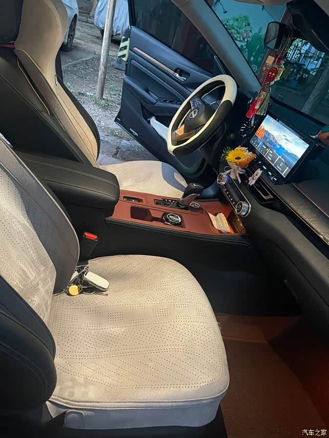 车里能看到不少金色饰边,一下子就把档次提上去了。方向盘是真皮多功能的,握着舒服,操作也方便。7英寸液晶仪表搭配12.3英寸中控屏,显示清晰,看着就很有科技感。中控屏里是Nissan Connect超智联系统,能导航,还有AR实景导航. 座椅那可是日产的招牌“大沙发”呀,用的是真皮材质,有3层缓冲材质,坐着别提多舒服了。前排座椅不仅能电动调节,还有加热和通风功能,冬天不冷,夏天不热,太贴心了。空间也很大