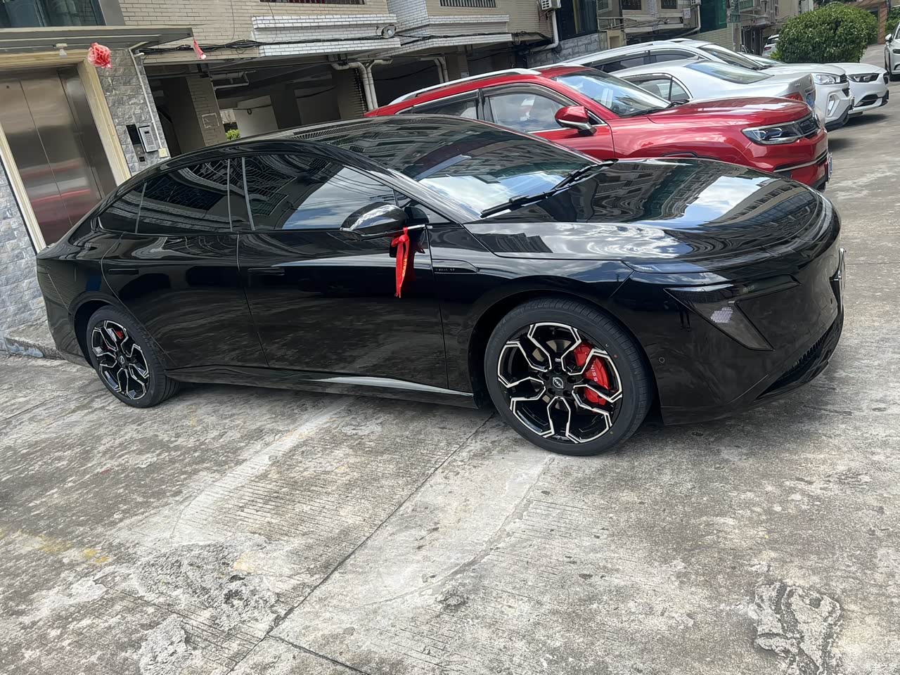 日产N7外观堪称颜值天花板!黑武士版本哑光车漆冷峻霸气,熏黑轮毂与红色卡钳碰撞出强烈运动感,溜背造型搭配贯穿式灯带,线条流畅又极具辨识度,开在路上回头率爆表,低调奢华中尽显锋芒!