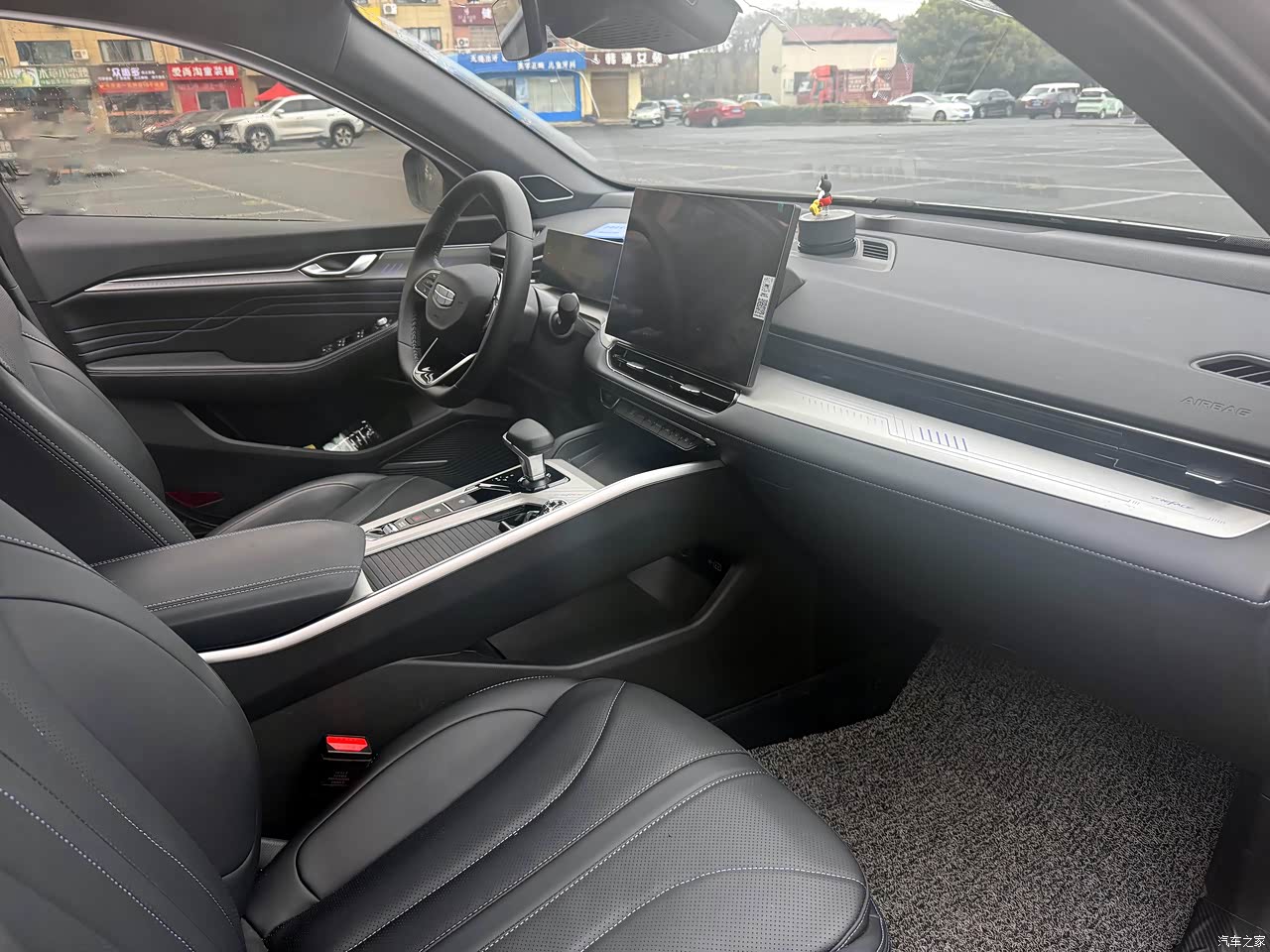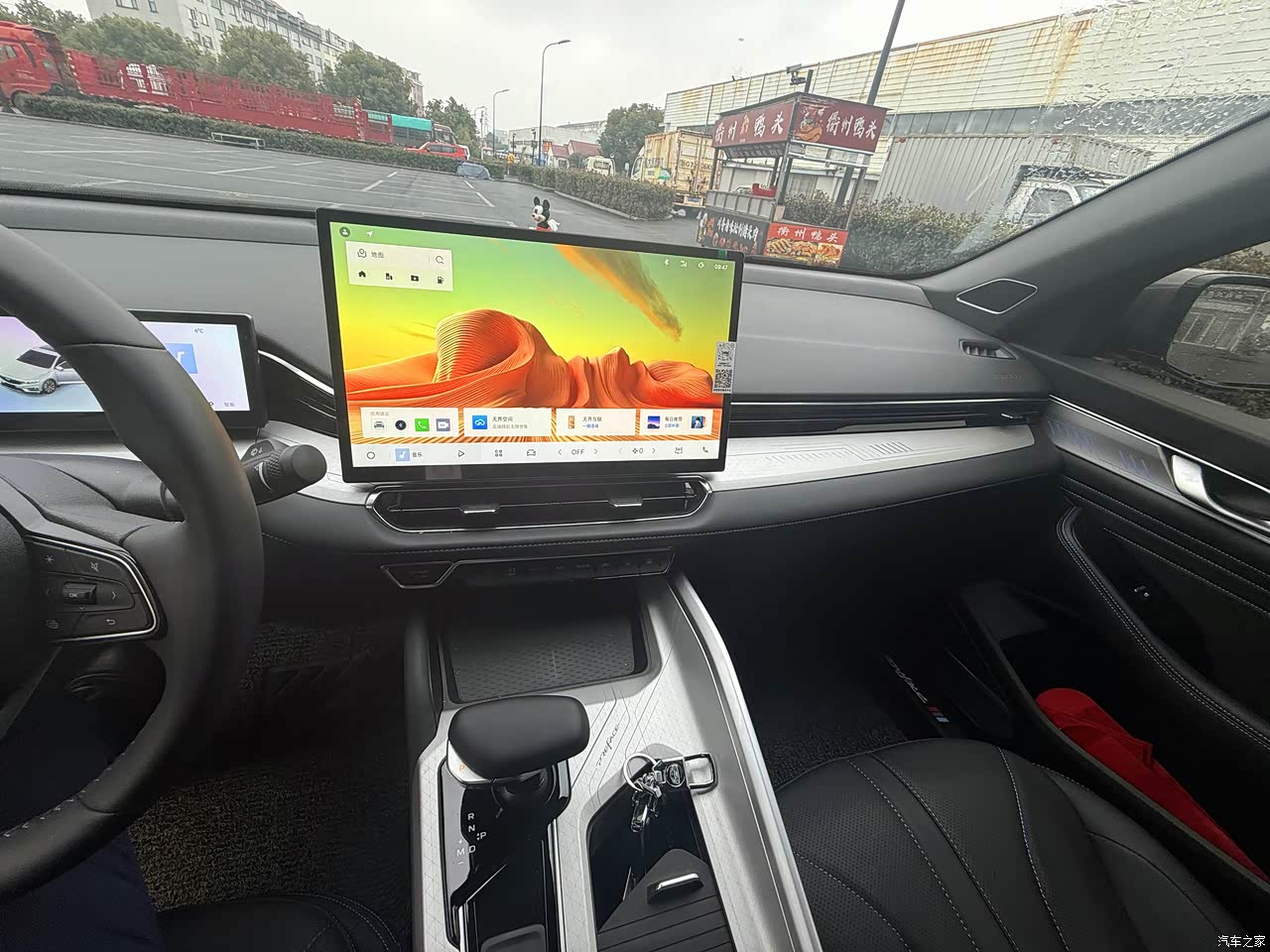 内饰颜值比较深色系列,灰黑色用的很多。但是银色的面板和蓝色的花纹图案也穿插其中,整体看着的氛围和造型也还是时尚的。