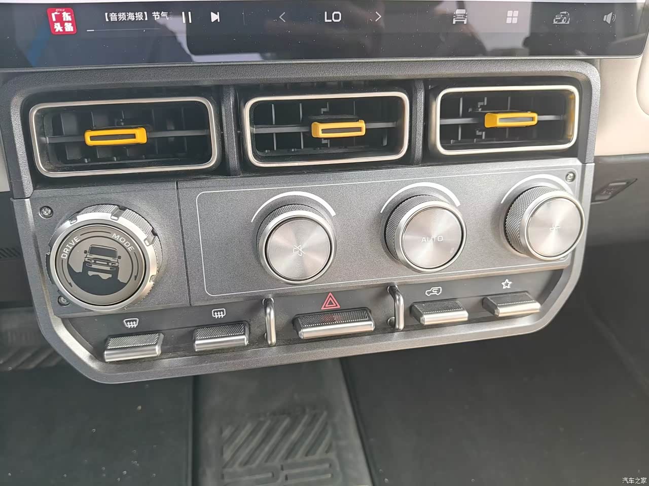 车内按键都是圆形的,有复古的感觉。出风口是方方正正的。圆形按钮下面设计也很个性。可以语音控制整个车机。很流畅。