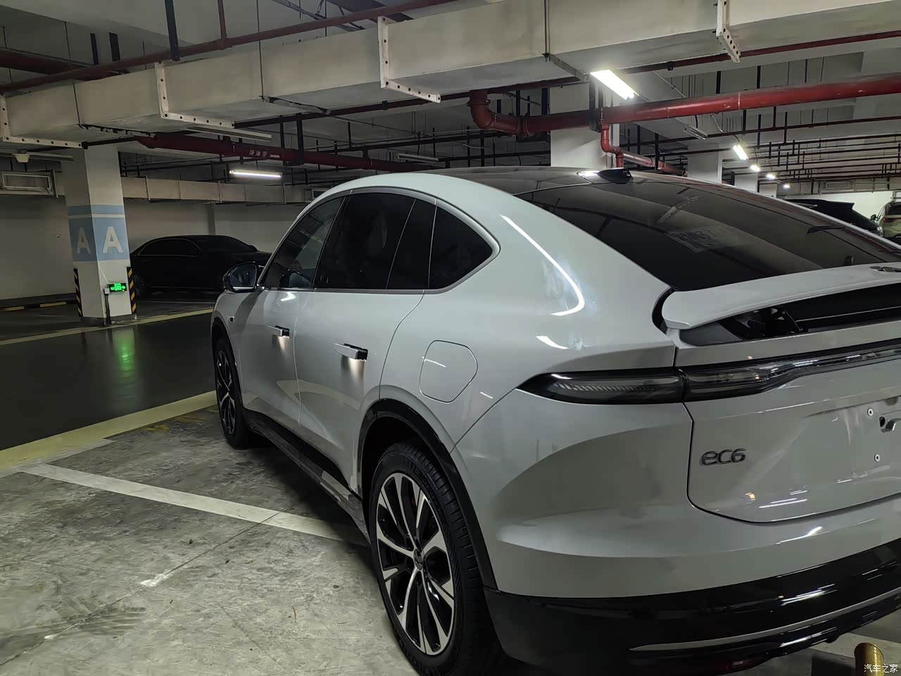 做为十来年的油车车主,经不住电车的诱惑,选择了EC6 配置方面:星灰+薄藤紫+21寸轮毂+可调光全景天幕+NOMI+后排舒享+女王副驾+充换电套装等,基本属于大满配了。 在选车过程中,对比了好多款新能源车,最终定了蔚来,但是在蔚来ES6和EC6之间纠结了很久,不过最终还是选择了EC6。 EC6外观太帅了,一见倾心的轿跑溜背SUV造型,全新的设计语言,颜值直接拉满,小众不失调性。比ES6多了个尾翼,车速快的时候可以自动升起。 坐进沉浸式座舱,蔚来的‘第二起居室’理念不是说说而已,环抱式的设计,内饰细节满满,隐藏式智能出风口,nappa皮质+可调光全景天幕+女王副驾,杜比全景声23扬声器系统,256色氛围灯随心切换,座椅按摩,座椅通风,可爱的NOMI.等等每一程都是头等舱体验。 性能:双电机智能四驱系统真不是盖的,前150kW感应电机和后210kW永磁电机,总功率360kW ,扭矩700N·m,百公里加速只要4.4s!轻轻踩下电门,那种推背感瞬间就来了,超车毫无压力。还有9种驾驶模式可以切换,毕竟是双电机四驱的守门员不管是日常通勤还是周末去郊外撒野,它都能轻松应对。
