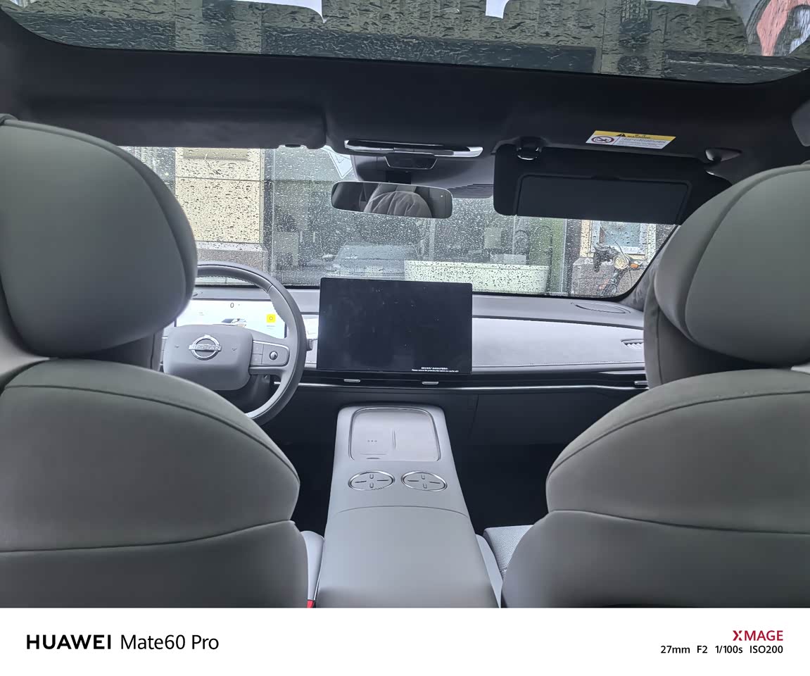 1:对面之前的20天籁,传统日系的塑料感虽然有点加强,但是其他新能源电车像中控下面还是大量使用的塑料,应该改成软包的,包括四门的下面。 2:日产n7车长4930,妥妥的中大型车,轴距2915mm,比之前开的天籁还要大,主副驾副座椅的舒适进入日常很实用,轻松进入,还可以把主副驾座椅调整到午休模式 3:后排空间表现:因为电车的原因,座椅的高度比普通油车还是高一点,座椅调整到位后排空间也非常宽敞,第二排纯平地板满座状态后排三人舒适感大大提升,1895mm车宽确保后排三人并坐不碰肘,中间乘客再也不用受拱起的地板和座位坐的不舒服了. 4:头部空间表现:超大全景天幕让头部空间提升约2-3cm左右无论在前排或者后排乘坐,头部都不会有任何压抑感,不过是真的热,已经把遮阳帘装了。