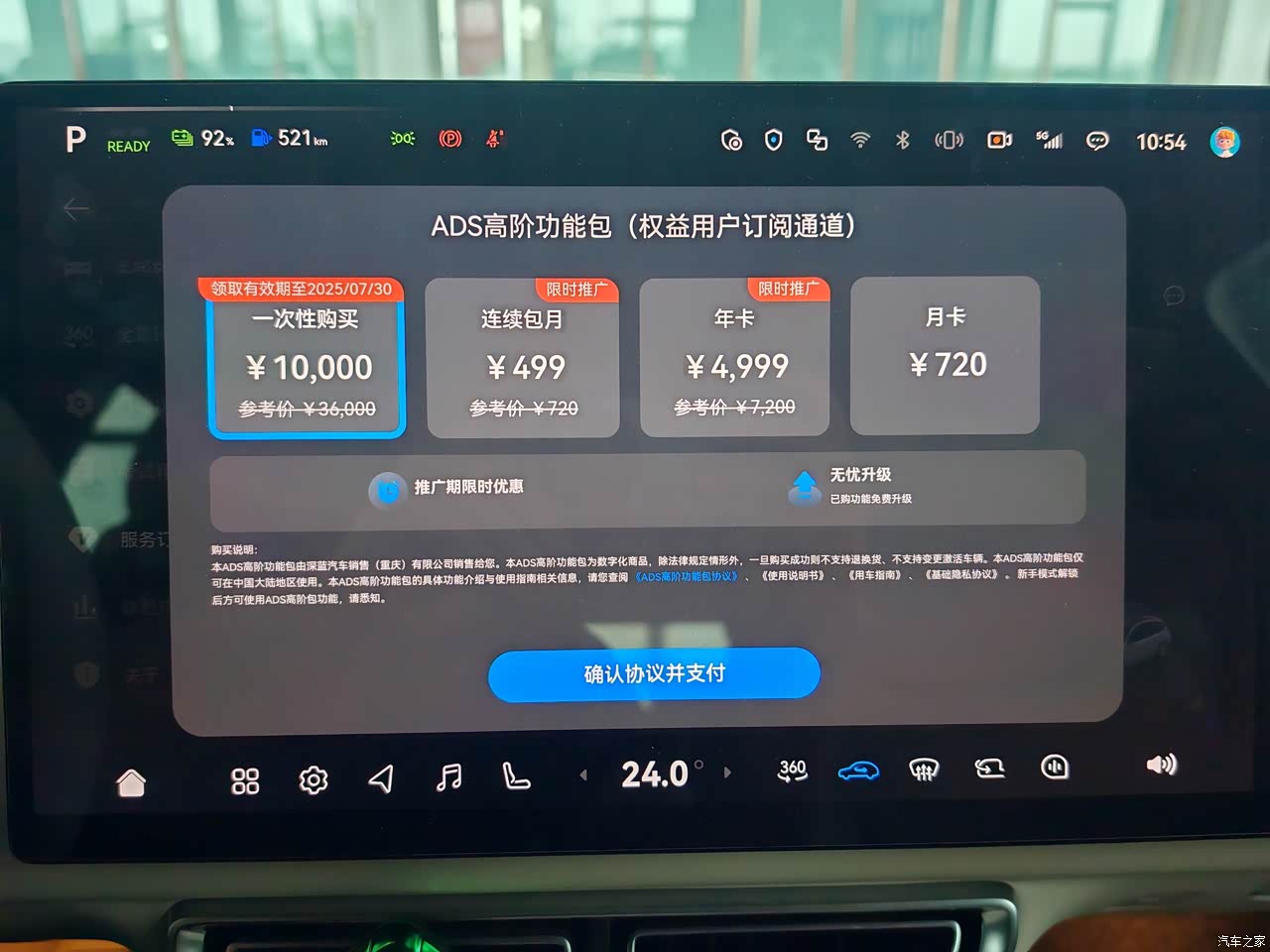 深蓝用的华为乾昆智驾也算是我选择它的其中一个原因吧,同样是3.3.2智能化硬件配置也不差激光雷达还是192线的算是顶配,只不过不是完全免费试用完了需要在交1万个元才能正式激活使用