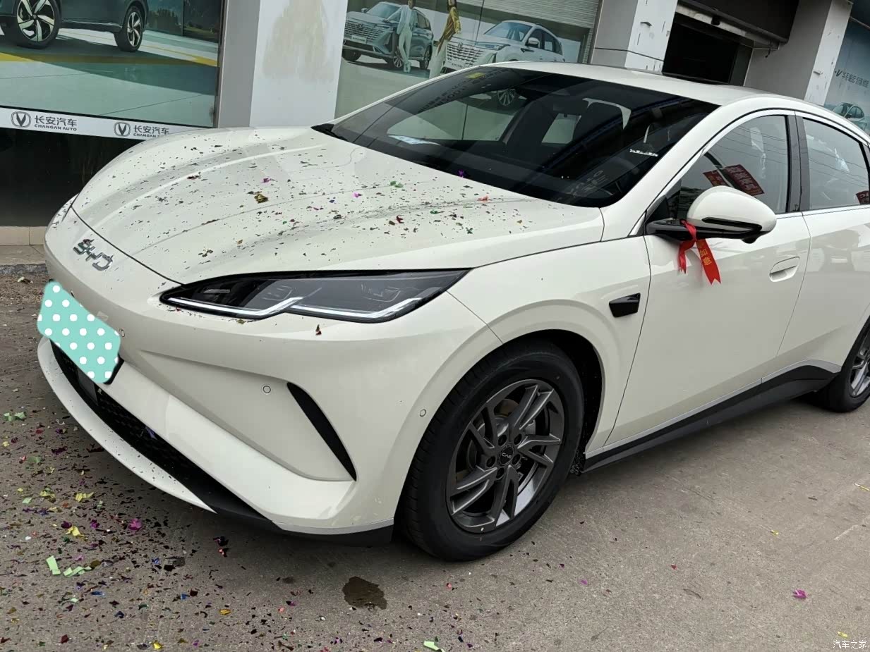 作为汽车专业毕业,几年前上学时候也是半个车迷,当年和同学讨论的都是EA8884G63T各种汽车型号底盘代号也是倒背如流,幻想以后买车奔着高尔夫gti锐志 使劲,可惜计划赶不上变化 阴差阳错之下目光投向电车,因为工作原因转行来跑网约车,所以看了埃安rt埃安Y秦plusev,犹豫之间突然这车上市了。 先说价格,545尊享全款没有任何置换,裸车优惠1.2w 底盘护板20次保养脚垫贴膜没了 1.外观印象: 第一眼外观确实不算惊艳但也挑不出什么毛病。 2.空间实用性: 坐乘空间相对于家里老旧丰田花冠来说肯定没办法比,大了一圈,但对于储物空间,说实话感觉不如当年老车丰富,后备箱就更不用说了,同级别来说因为是后驱很小。 3.驾驶体验: 对于一直开油车的人来说,第一次开电车那动力体验哪怕是电动小面包都是质的飞跃,绿灯第一个冲出去,油门刚踩一会没反应过来一看仪表90多了,没有了发动机的轰鸣太容易超速了,转向手感感觉略沉,我对比的也是老丰田,相对于一些德系还是差不多 4.续航实测: 一直在市区转悠,目前开的比较少显示13个电 5.智驾亮点: 确实很震惊,很久也没怎么关注汽车,我对比亚迪印象还停留在F3三菱4g15发动机,没想到如今又是辅助停车,又是辅助驾驶,最主要才十万出头的车 6.充电评价: 快充一个小时充满,说实话电动车能按家充尽量按,峰谷电太便宜了。 7.性价比: 这车家用性价比我觉得还算可以,该有的都有了,也不想一些品牌智驾非智驾好几个型号看的眼花缭乱,一共三个配置简洁明了,但对于我开网约车来说性价比稍微低一点,因为毕竟车贵了些。