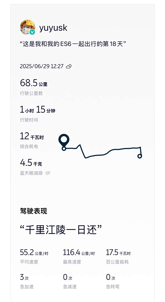 【续航能耗】 网上一直诟病蔚来的续航表现,我也很好奇,买来第一时间开上高速试了试,实际体验下来并没有网上说的那么夸张,什么满电只能跑200多公里高速,实际上我苏州一个来回,综合能耗在17-18千瓦时/百公里,换算下来75度电大概能跑400公里左右(正常开,空调也全程开着,也没有刻意节省电),综合能耗还是能接受的范围,并没有网上这么夸张,也有可能是因为我是新电池?