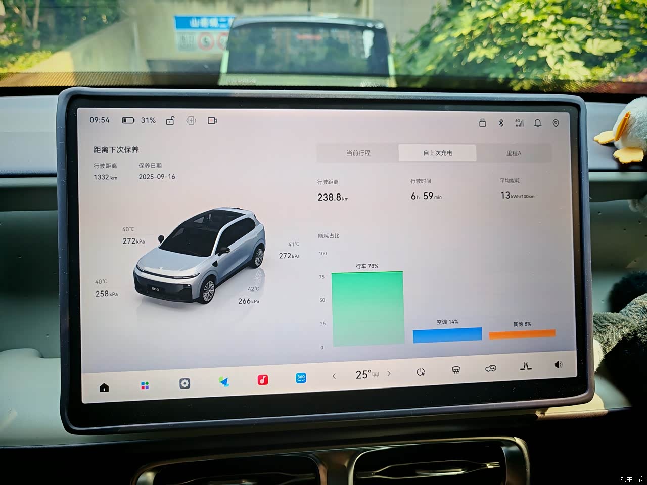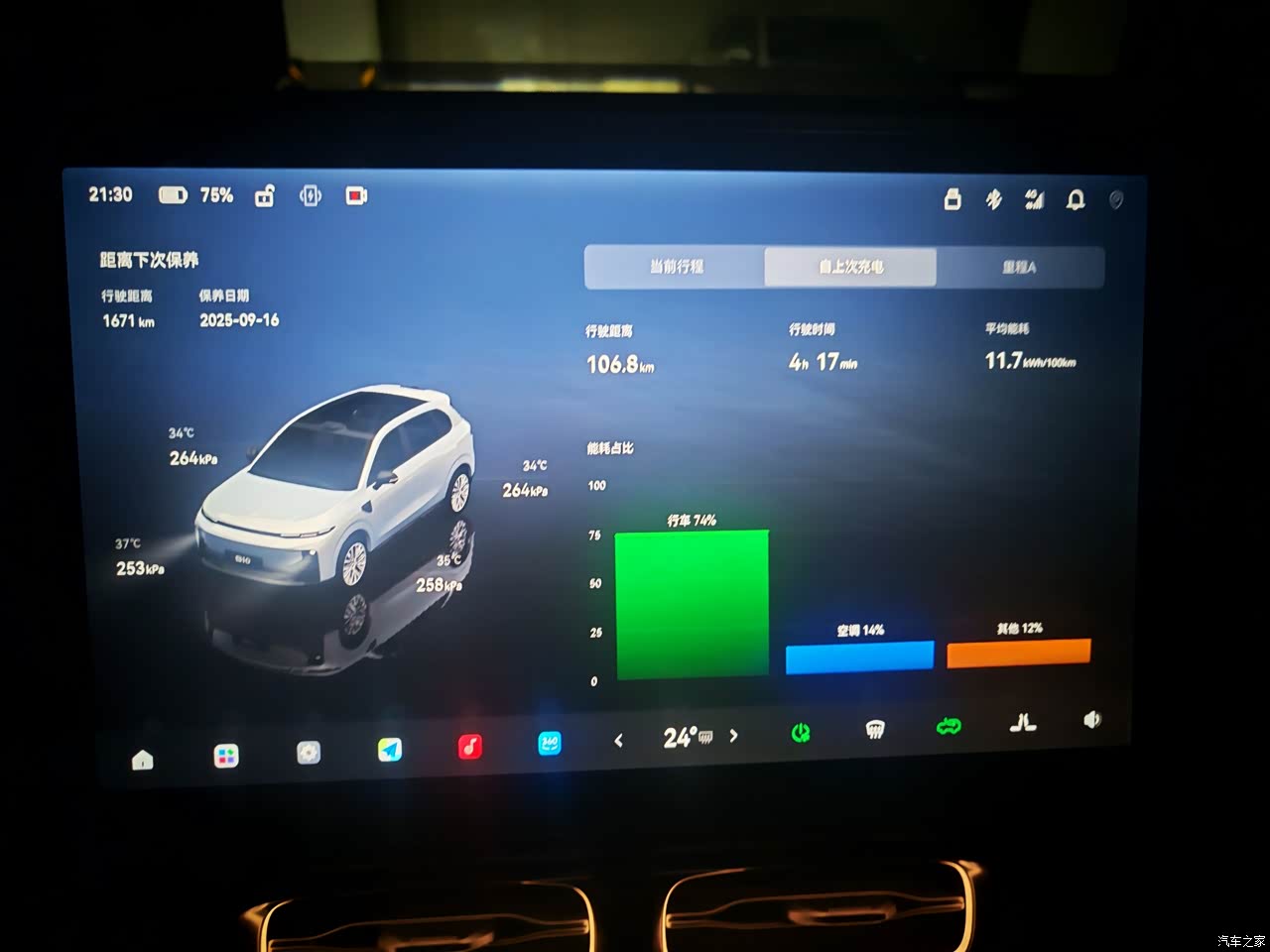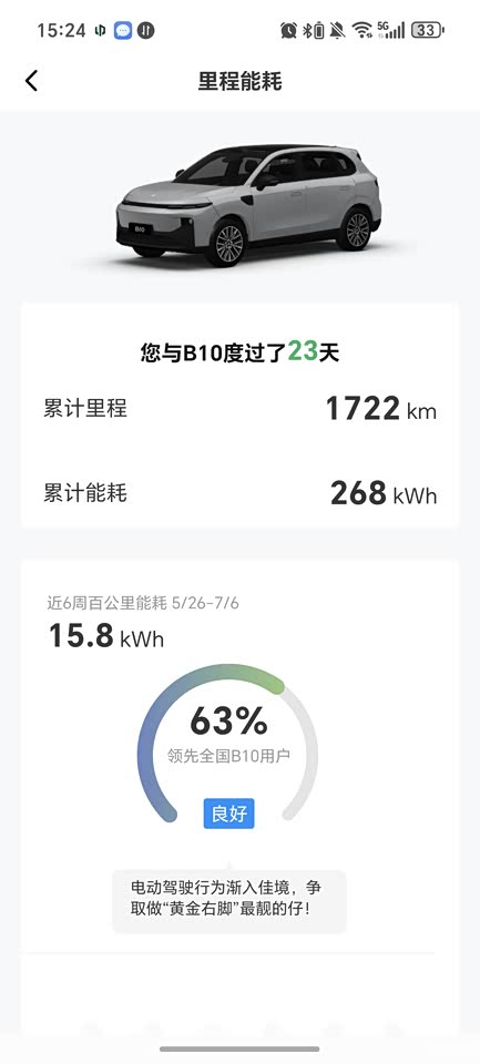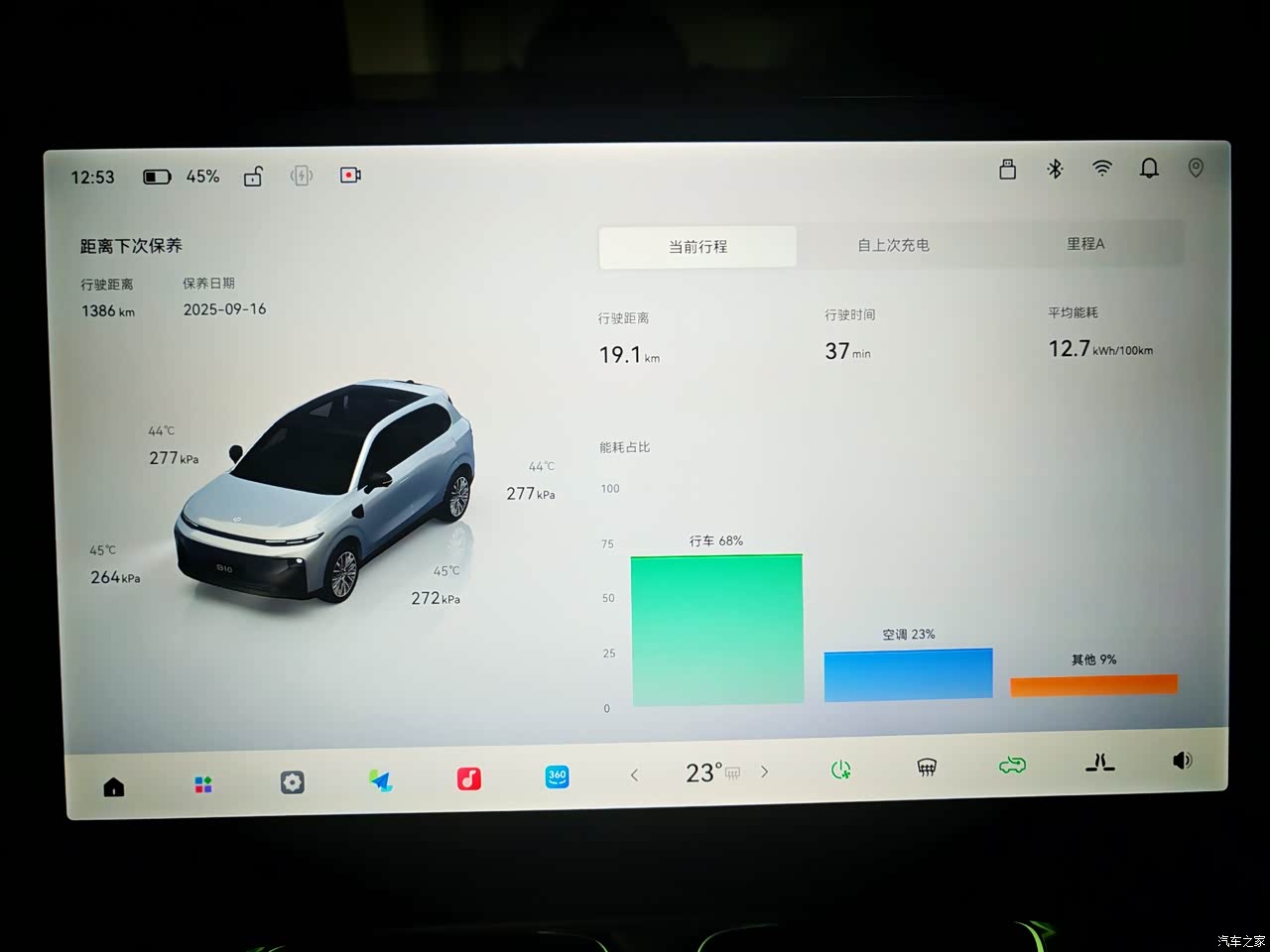 电耗也是在能接受的范围内的,评价下来15.8,毕竟这么热的天,而且我基本长期是满员出行,导航➕听音乐或者是小朋友看爱奇艺动画片,基本能跑到四百三十公里左右,我觉得67度电池,能跑这个数据,够可以了,如果一个人开或者天气没这么热的话,应该会达成更好的