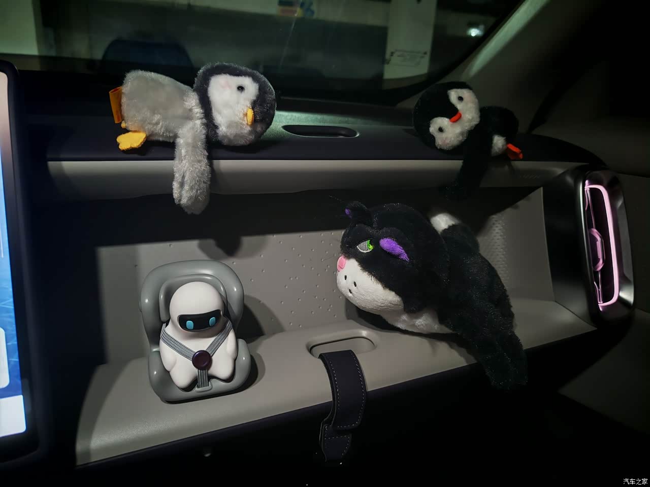 内饰来说,简约大气不简单,尤其副驾的DIY空间,确实百变,买回来就把各种小公仔都安排上了,确实情绪价值拉满啊,加上大面积的软包设计,说高级感满满怕你们说我夸张,但是确实没有一点廉价感,反正我个人是真的很喜欢