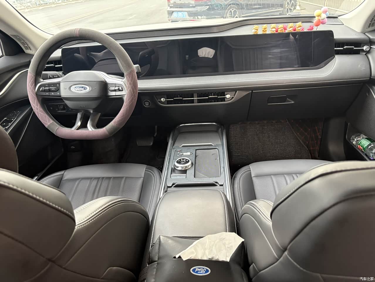 内饰这块是黑色内饰,再就是这个27寸一体式超级大联屏,我比较喜欢这个内饰配置,少了点实体按键,多了智能控制,还有就是这个旋转按钮挂档,也是比较方便的