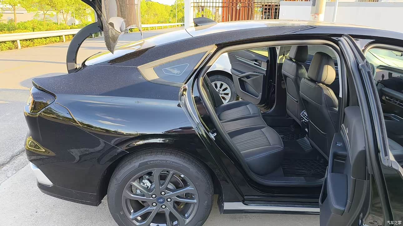 买蒙迪欧的原因之一就是有空间,在同级车型里,蒙迪欧的车长不是表现最佳的,但轴距是top,空间利用率特别高,2945毫米轴距,直接让车内乘坐空间拉满。我本人身高是175cm,体重80kg,前排调到我喜欢的半躺开车姿态,保持不动,我在后排坐着膝盖到前排的距离有两拳的样子,对于这个空间表现我是非常满意了。