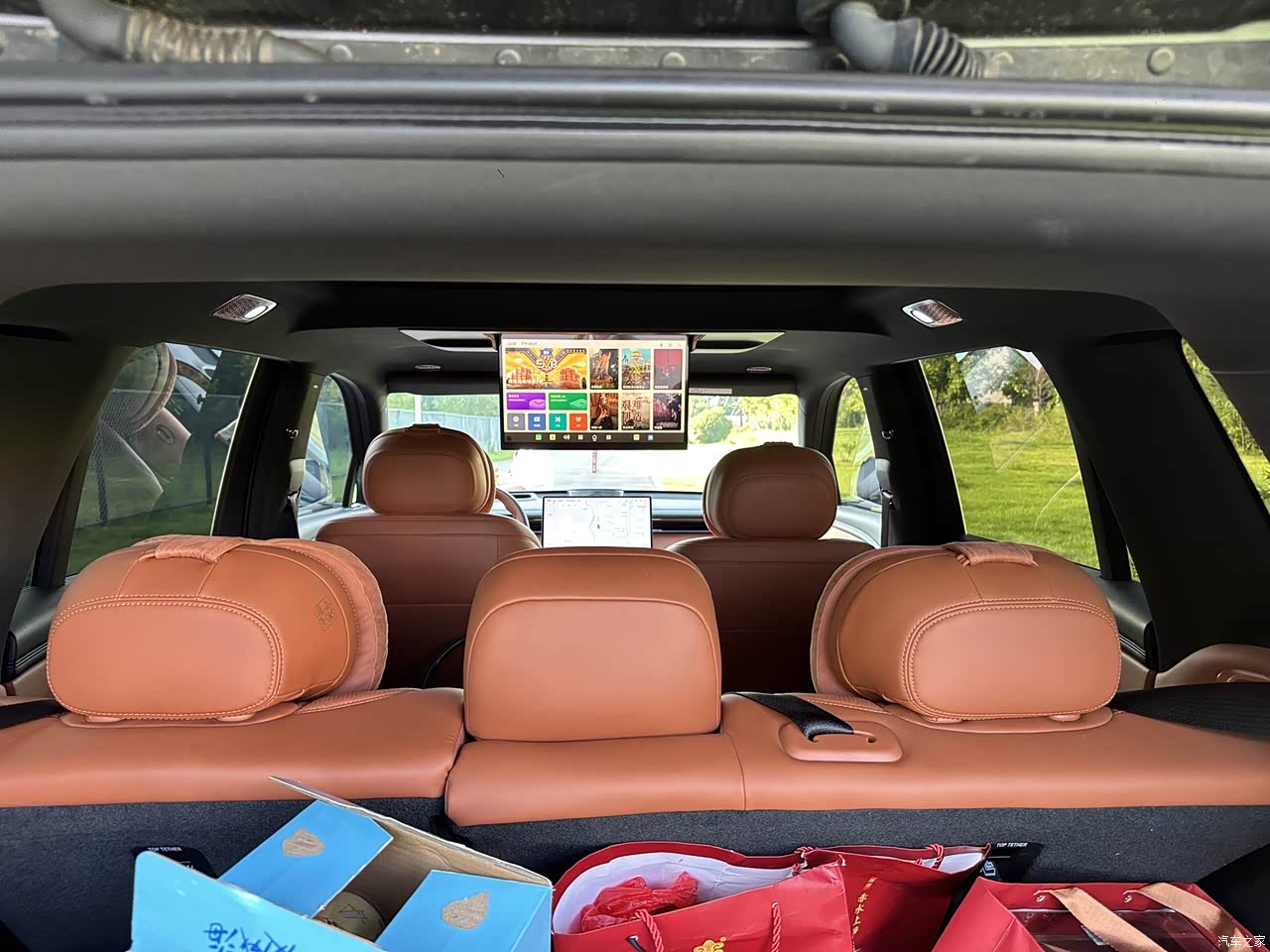 内饰选择了我喜欢爱马仕橙➕氛围灯 ,属于是自拍背景界的天花板啦 ,遮阳板化妆镜🪞自带环形补光灯 ,适合日常通勤 ,出去跟对象约会游玩的时候补妆 的真香定律嘿嘿 ,二排还有17.3英寸吸顶大屏 ,支持游戏跟观影 配合着杜比全景音响 ,午休时间在二排听歌 看个小电影 ,简直不要太愉悦 ,后备箱电动开启 ,空间很大 ,可以装得下很多东西 ,简称移动的第二个小家🏠