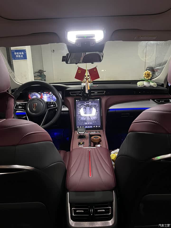 内饰方方面的话我选择了黑外红内的配置,我特别喜欢这个颜色,显得很高端,内饰采用了T型布局,暗金色出风口设计显得特别精致,大量软性材质的皮质的搭配,显得氛围很温馨,座椅采用真皮材质,柔软度和人体十分贴合,主驾驶支持12向电动调节,想怎么舒服就怎么调节十分方便,12.6英寸中控屏我十分喜欢,科技感十足,主副驾驶配备座椅,通风,座椅加热等功能,让人十分舒服。