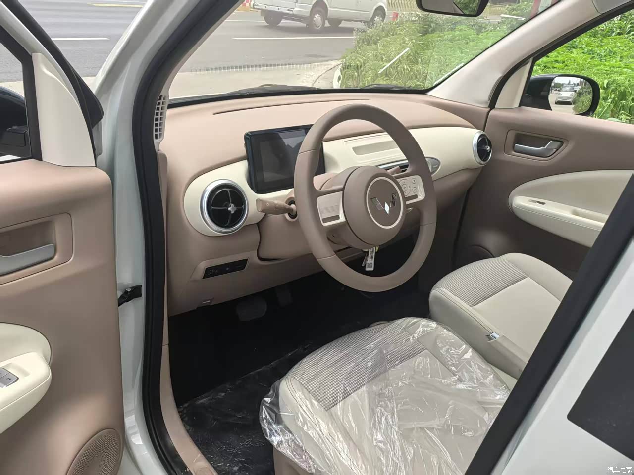 内饰整体风格比较温馨,也很适合小女生,但就是在配置方面不算很高。普通的织物座椅,座椅电动调节这些就别想了。