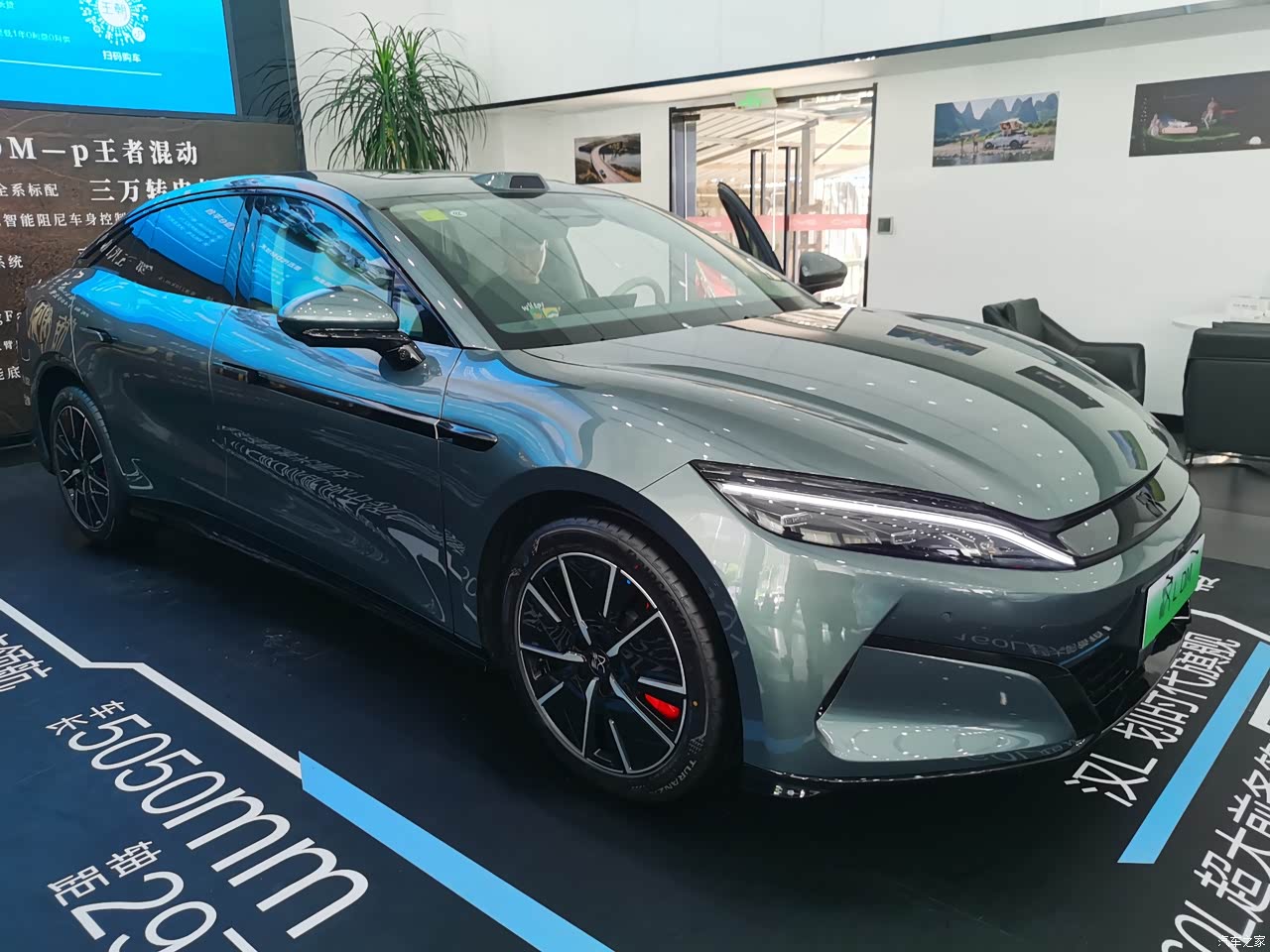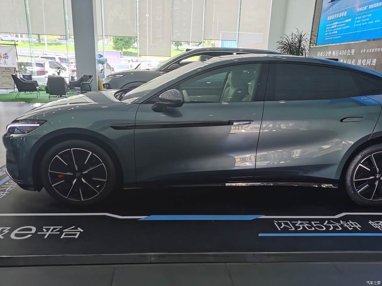 汉L的底盘低,车头长,整体营造出了一种猎豹的俯冲感。要注意的是银色和墨绿色9月份后就得选装加价6000,现在买的话还是可以随便选择外观。很多人拿汉L和小米su7比,我只能说汉L适合更成熟的人,su7适合年轻点的。
