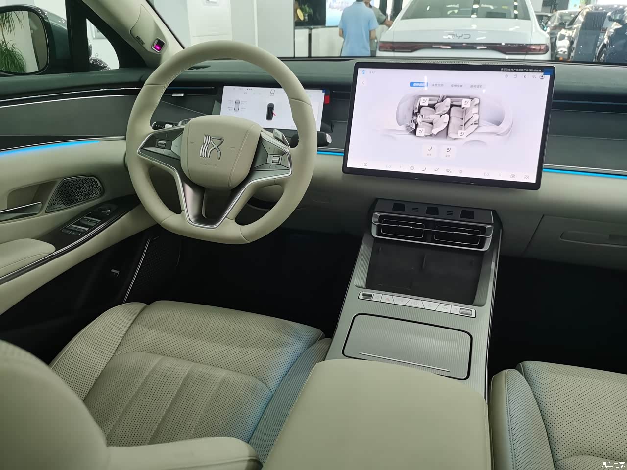 这个浅色内饰看着真舒服,清新淡雅的,汉L是取消了家族通用的中控档把的,全部换成了怀挡式。这样的设计让整体内部空间显得更加简洁明了,大气好看。
