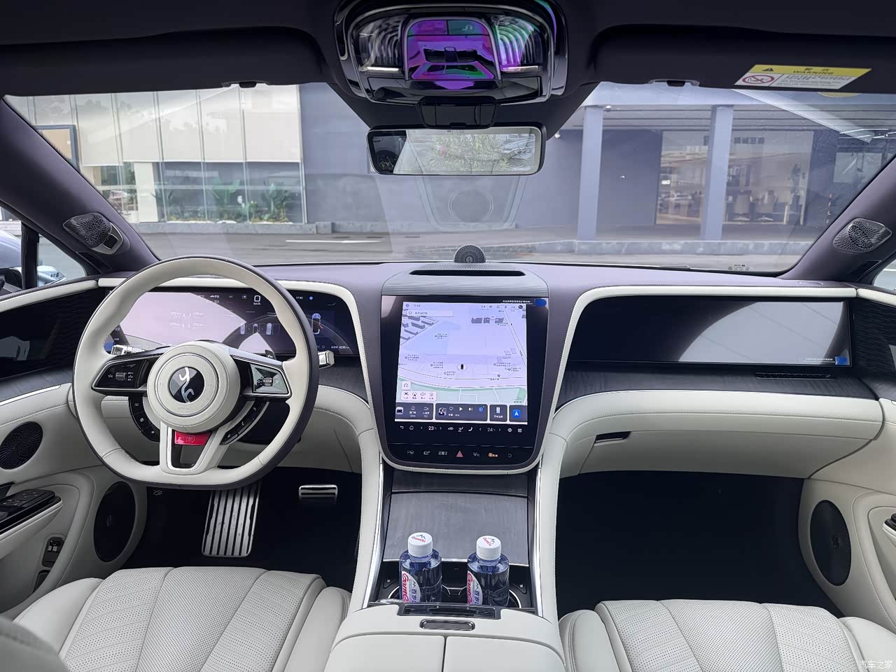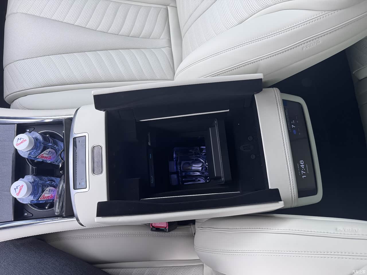 内饰做工精致,看得出用了比较高级料子,不会太塑料感。而且听销售说整车有23个丹拿音响喇叭,听歌的音质真的非常赞!中控超大屏,色彩度都可以。开车时候有抬头显示,就不用总是低头看这么麻烦。呼叫指令遇到频繁的输出时,可能会有些卡顿。配备冰箱这个功能是非常加分的。特别夏天,总喜欢喝冰的。