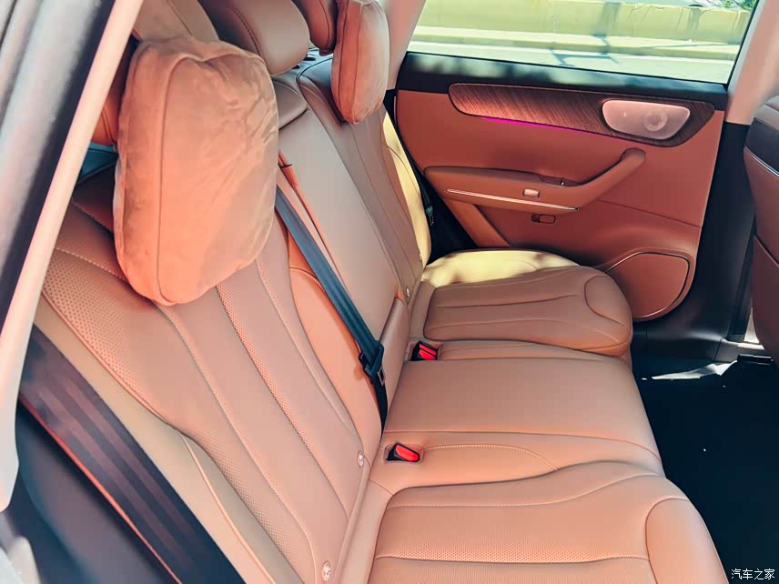 内饰部分用料考究,设计的更加简洁时尚。座椅部分采用了纳帕真皮,前排座椅支持通风、加热、按摩。后排备有独立分区空调,顶配车型配备了抬头显示和副驾零重力座椅。中控台及车门采用了部分实木装饰,整体内饰更显高级感。全景天幕配备了电动遮阳帘,能很好的隔绝太阳直射,很贴心也很实用。