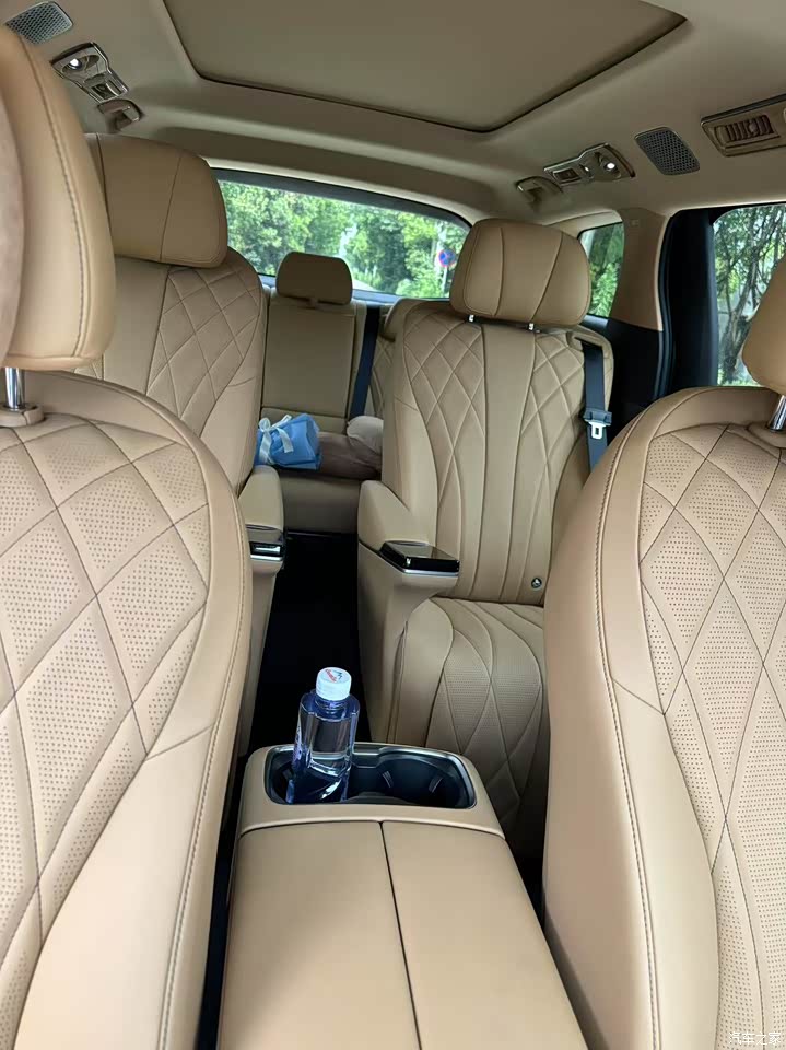 坐在车内,整车空间大,很能装,全家七口出门,后备箱塞三个行李箱再加几个背包没有问题,25款第三排滑轨加长了30cm,有次带父母去旅游,第三排的老人把座椅往后调了调,膝盖离前排还有段距离,再也不用蜷着腿了。三排的头枕还能下调,我娃坐在第三排头刚好靠在中间,不像以前总往下滑。