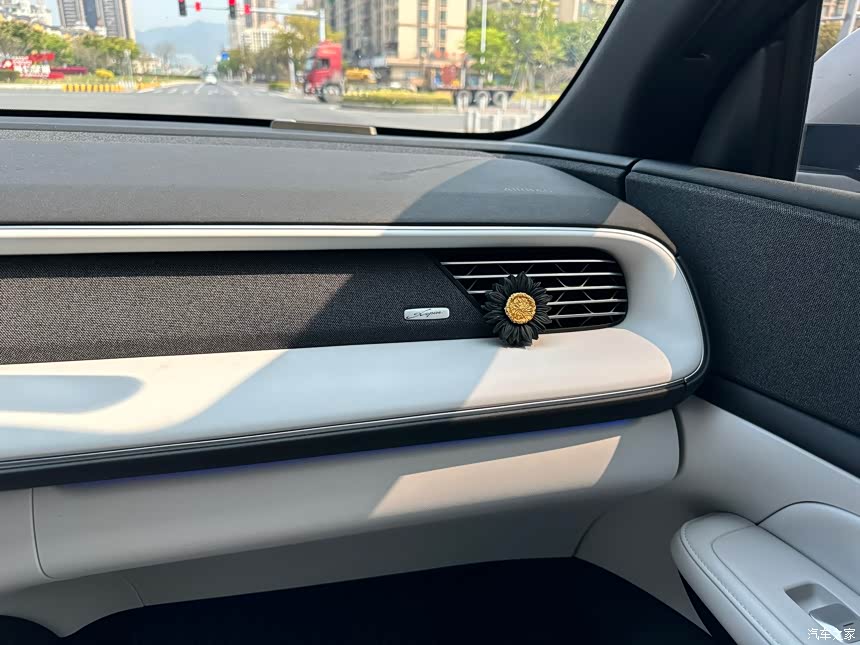 ● 科技配置 ○ 中控大屏:配备14.96英寸的悬浮式中控屏,显示清晰,操作流畅,集成了车辆的大部分功能控制,如导航、多媒体、车辆设置等。 ○ 仪表盘:10.2英寸全液晶仪表盘,显示信息丰富,包括车速、电量、续航里程、驾驶辅助信息等。 ○ 车机系统:搭载Xmart OS 4.0车载智能系统,配备高通骁龙8155芯片,保障了车机操作的流畅度。 ● 座舱设计 ○ 方向盘:采用双辐式平底方向盘,双色设计,造型独特,不仅增加了腿部空间,还能为驾驶者带来更好的前方视野。 ○ 中控台:中控台采用T字形设计,造型简约,线条平直。 ○ 储物空间:中控台为镂空设计,内部有一个两侧开口较大的储物槽,取放物品方便。中央地台区域上层储物槽前端是无线充电板,后端为两个配有限位器的杯架。 ● 座椅配置 ○ 材质:首搭云感环抱座椅,座椅贴合人体工学曲线,使用亲肤柔性面料,大面积采用超细纤维绒面,以及创新抗菌耐污的有机硅皮革,触感舒适。 ○ 功能:前排座椅支持电动调节、加热、通风功能,主驾驶位座椅还配有记忆功能;后排座椅支持靠背调节以及比例放倒。 ● 车内氛围 ○ 灯光:车内配备了氛围灯,可以营造出不同的车内氛围,提升驾乘的舒适性和趣味性。 ○ 空调:“无风感”智能空调,利用流体力学可以智能精准控制空调